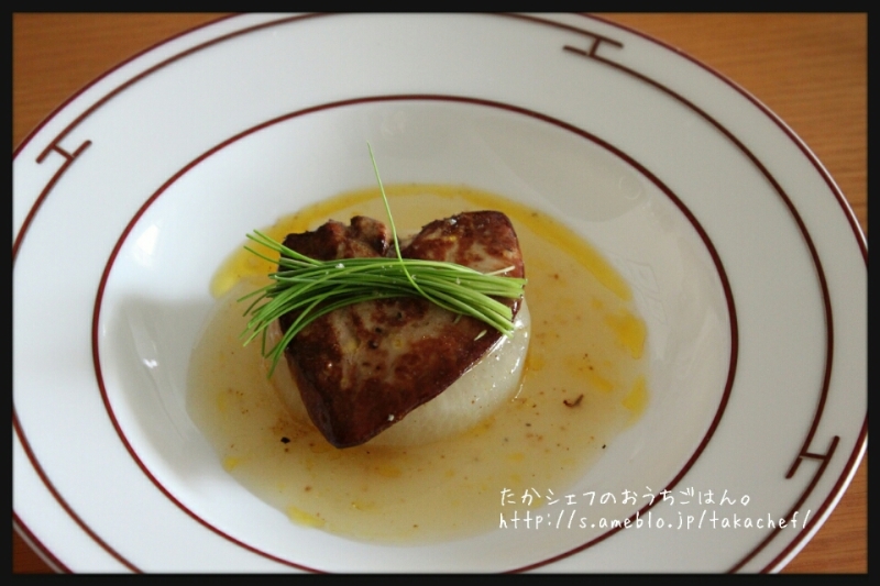 たかシェフは、これにコンソメゼリー?スープを下に注いで2層のスープにしたかったみたい。