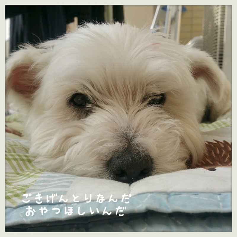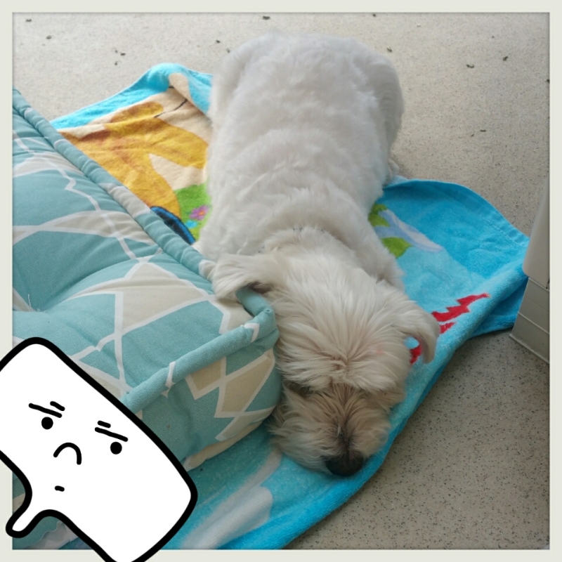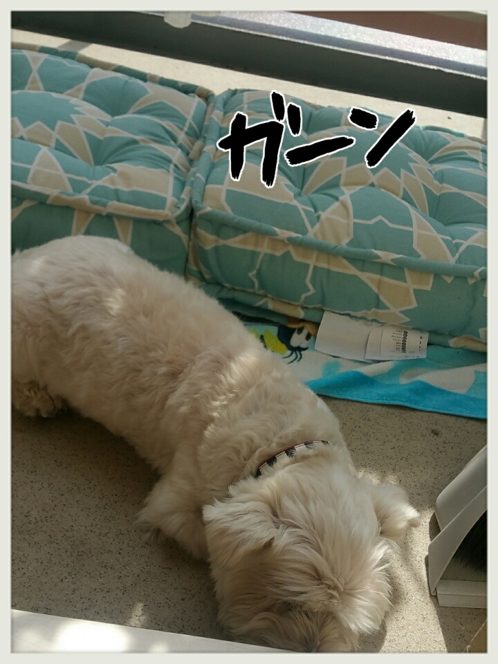 ごりごりした上で寝る事を気の毒に思い~、クッションをベランダにおいてあげた。