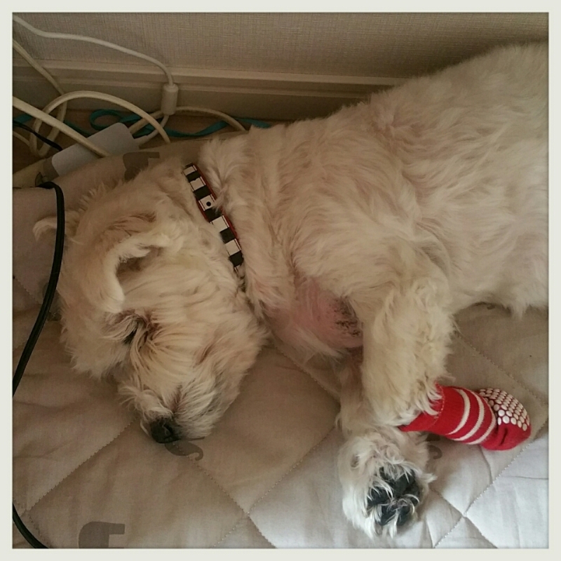 チュッちゃんは、ちゃんと靴下を履いて寝てます