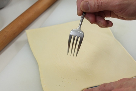 フォークで穴をあけて、穴を開けた方が表にでるようにひっくり返す