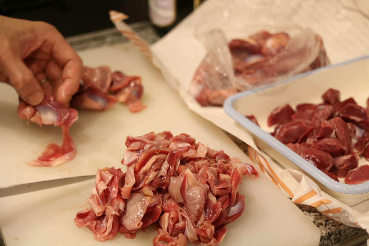 砂肝の下処理をしているたかシェフを覗きにいったら、