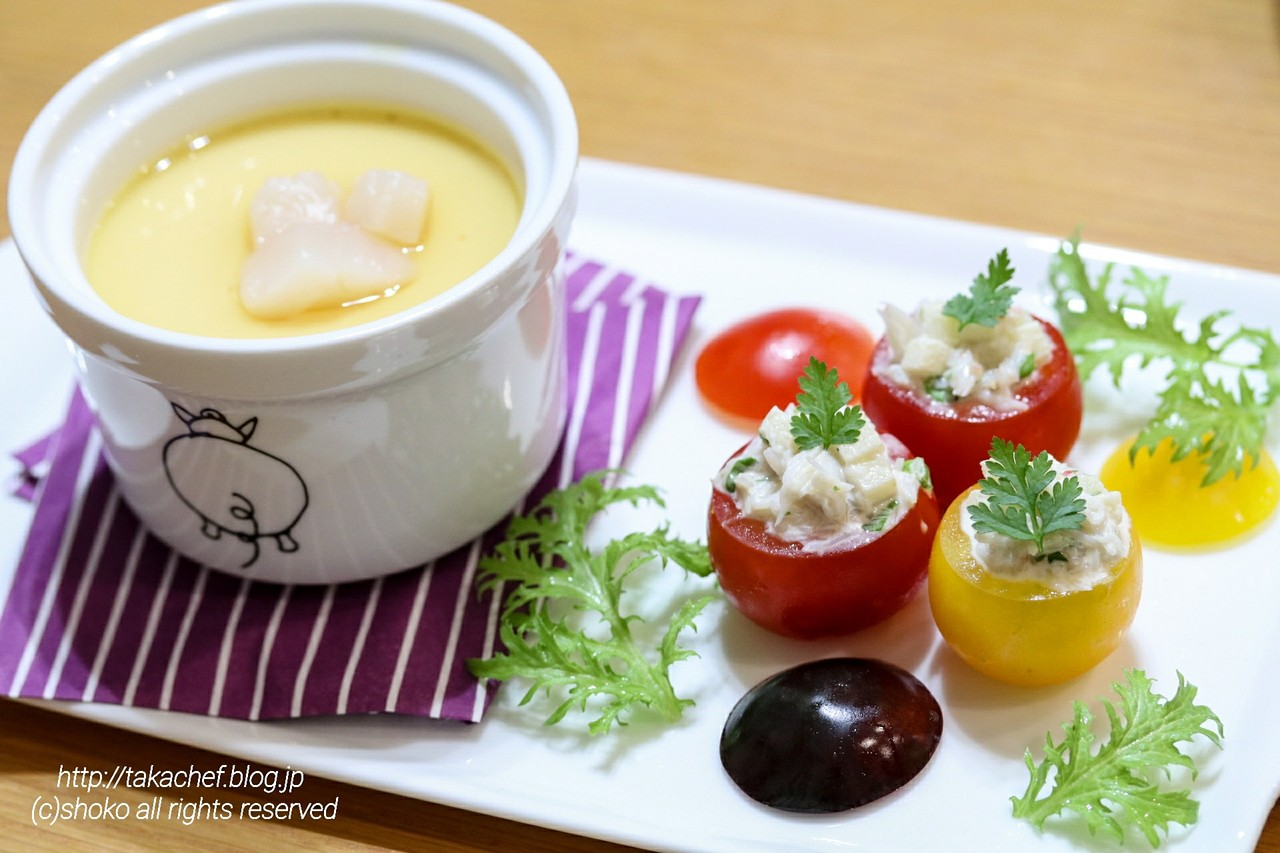 ホタテのロワイヤルとスタッフドトマト
