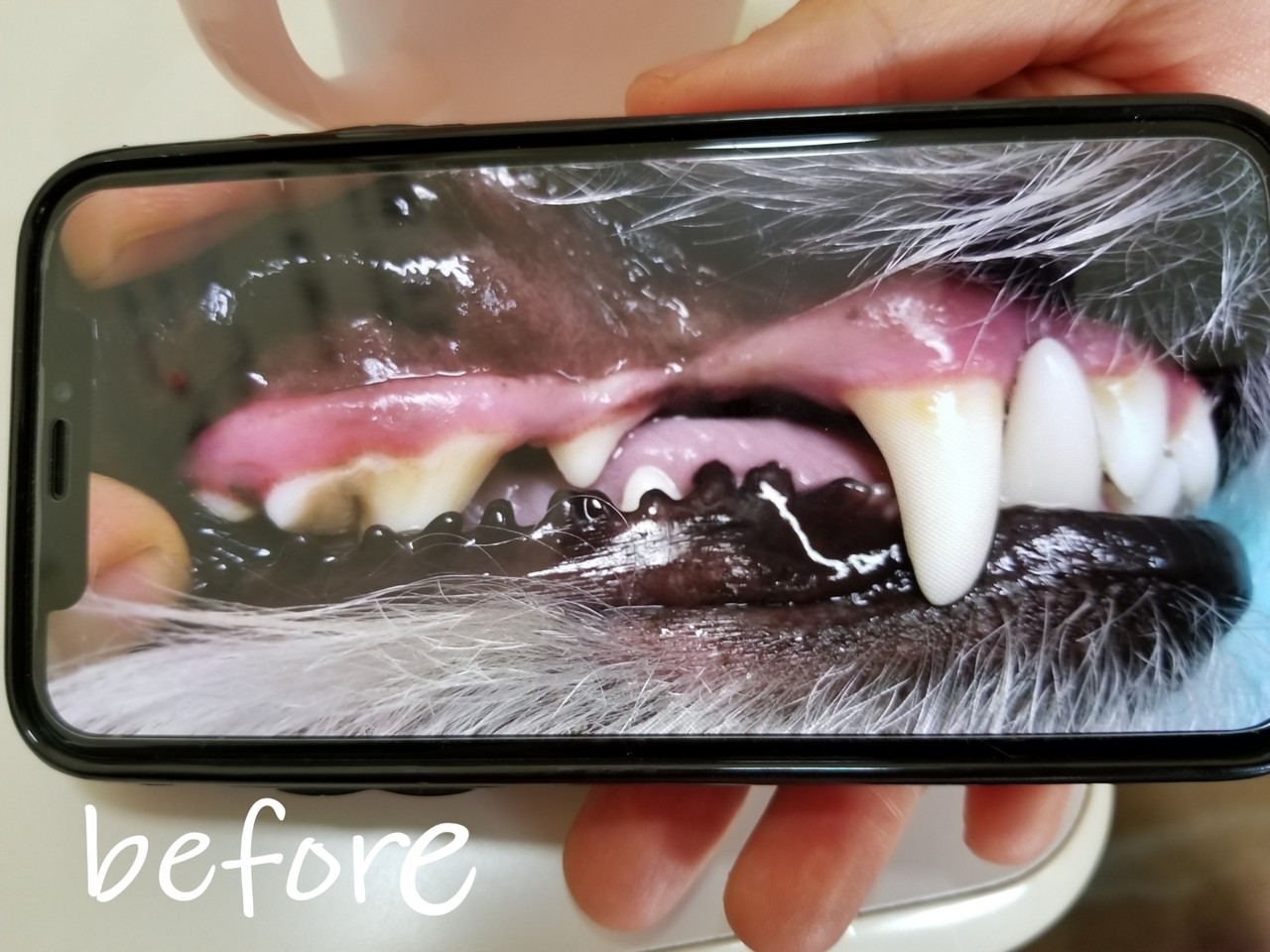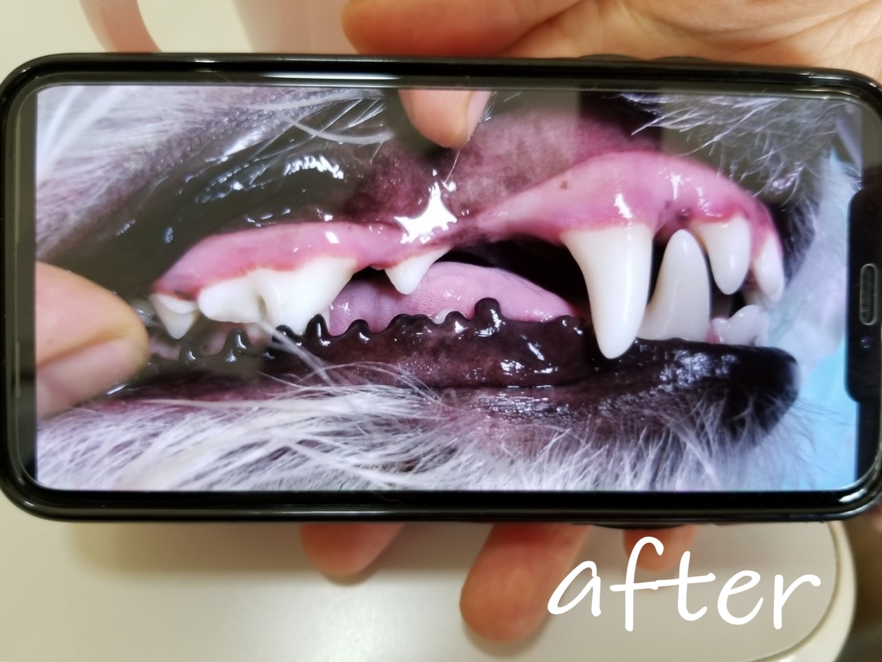 afterがきれいなのはもちろんですが、ブログを見ているとウェットなものも食べているのに、beforeもそんなに歯石付いてないですね。しょうこさんがちゃんと歯磨きしてあげてるんですね。