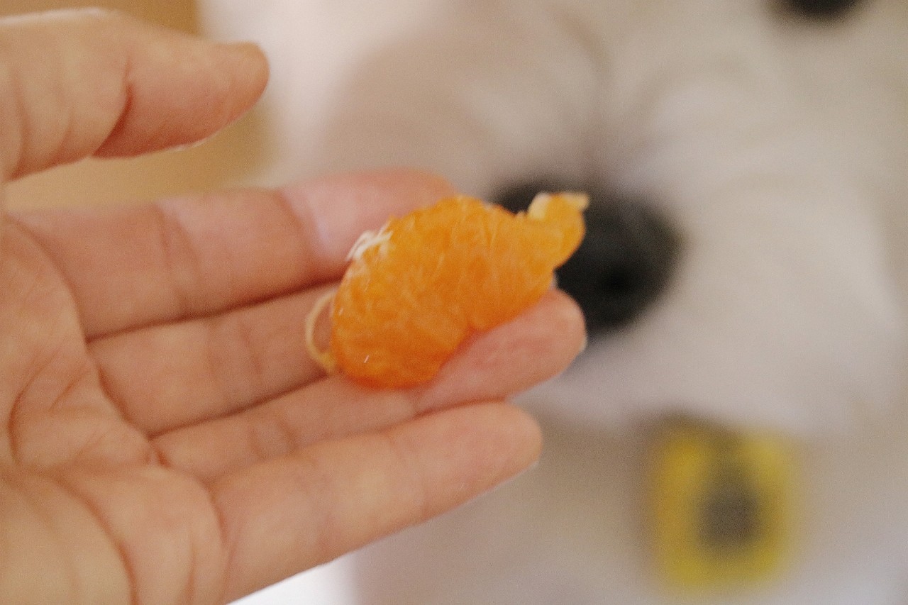 糖度チェックをしてもらったので、飼い主は一人でみかんを堪能していた。