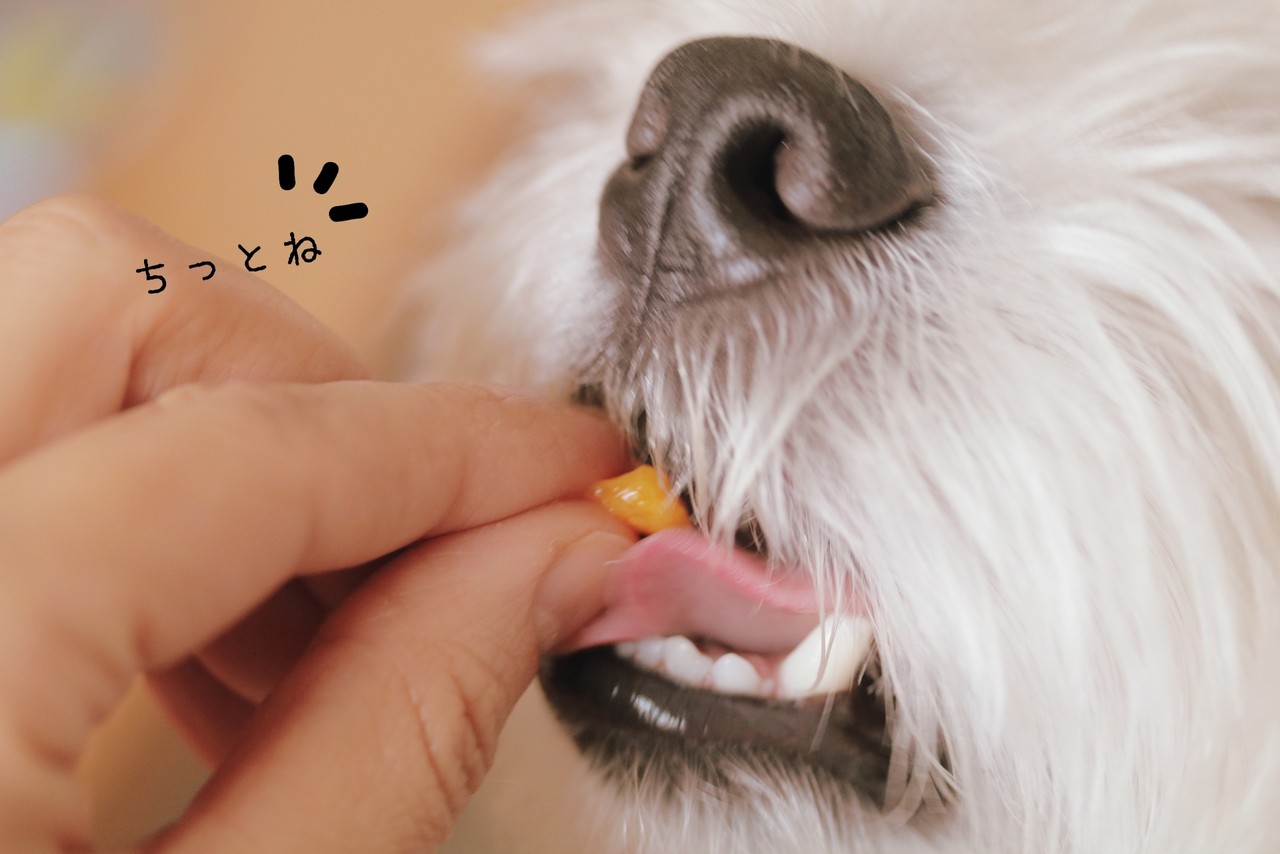マンゴー香りいいし、ワンにとってはちょぴっとでも満足できるんじゃないかなぁ。