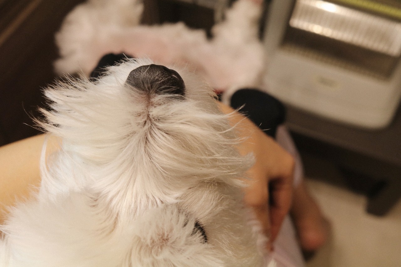毎日のあんよ処置中のゆきち。おとなしくしているよ。