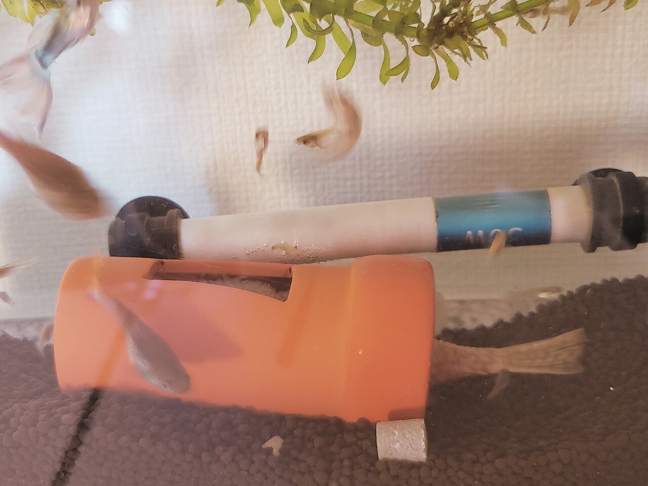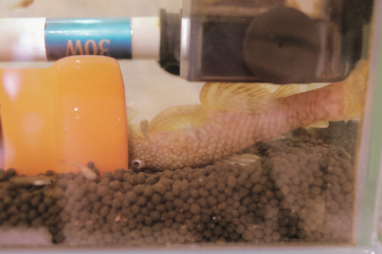 水槽を覗くと急いで隠れるんだ。