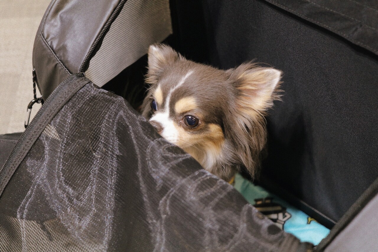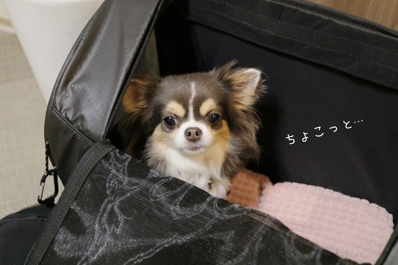 それでも、気に入ってリュックの中から目だけだしてキョロキョロと、人間たちを観察している(笑)