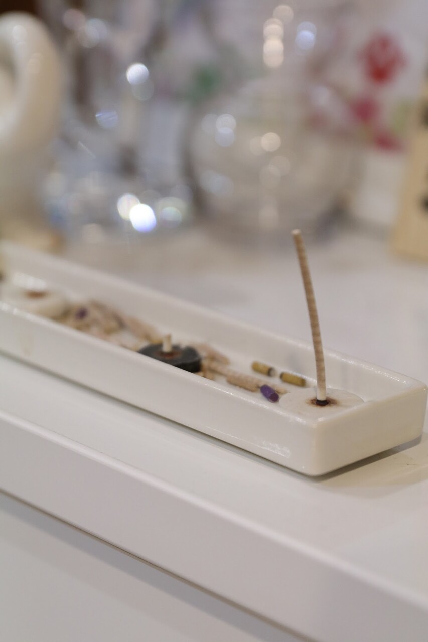 ※お香は長さが短いから、ちゃんと受け皿の中に灰は入るし、万が一ぽろっととれても、受け皿の中にお香が入るから家事になる心配はないかな。