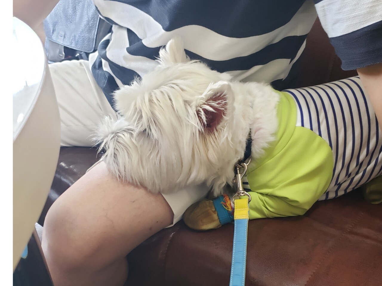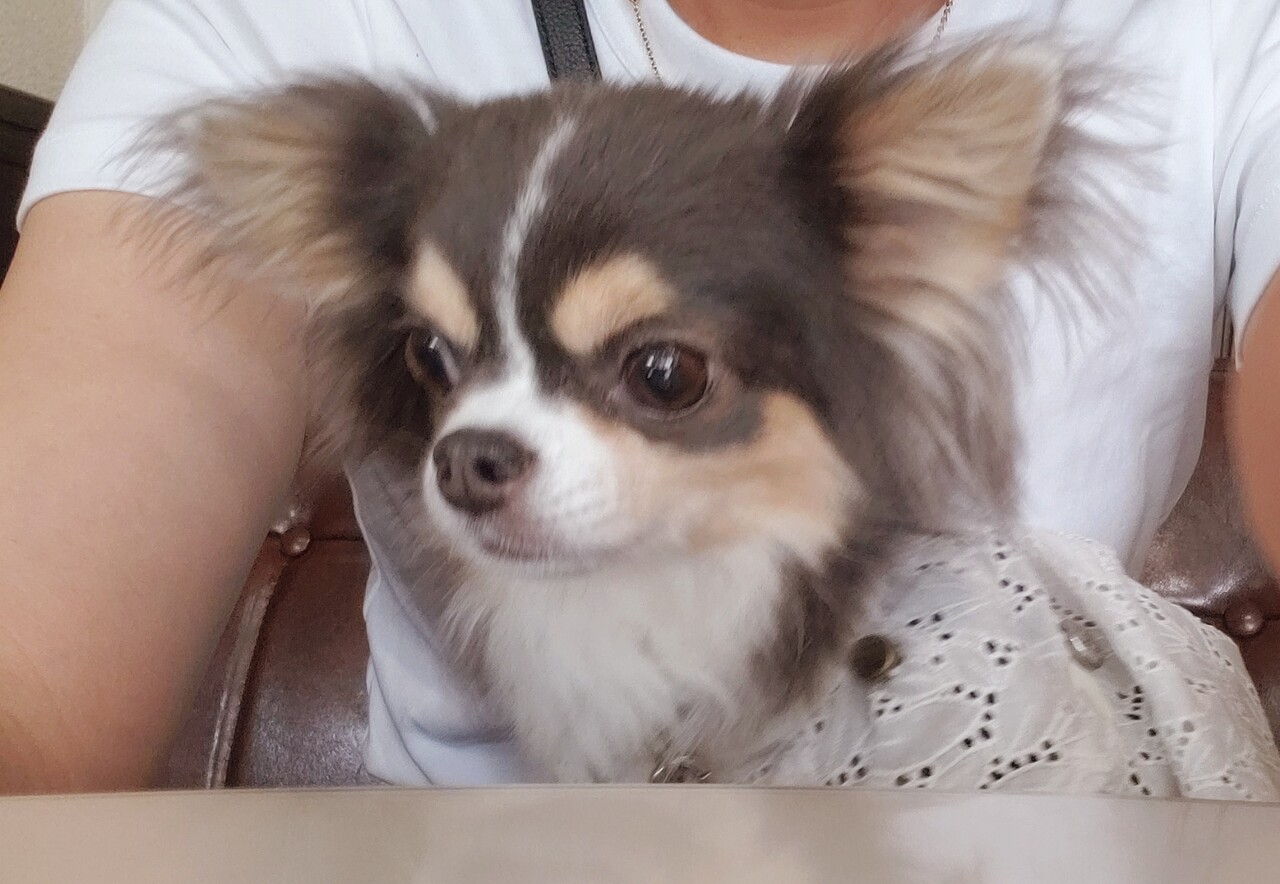 ゆちち、テーブルの下でおとなしくしとります。