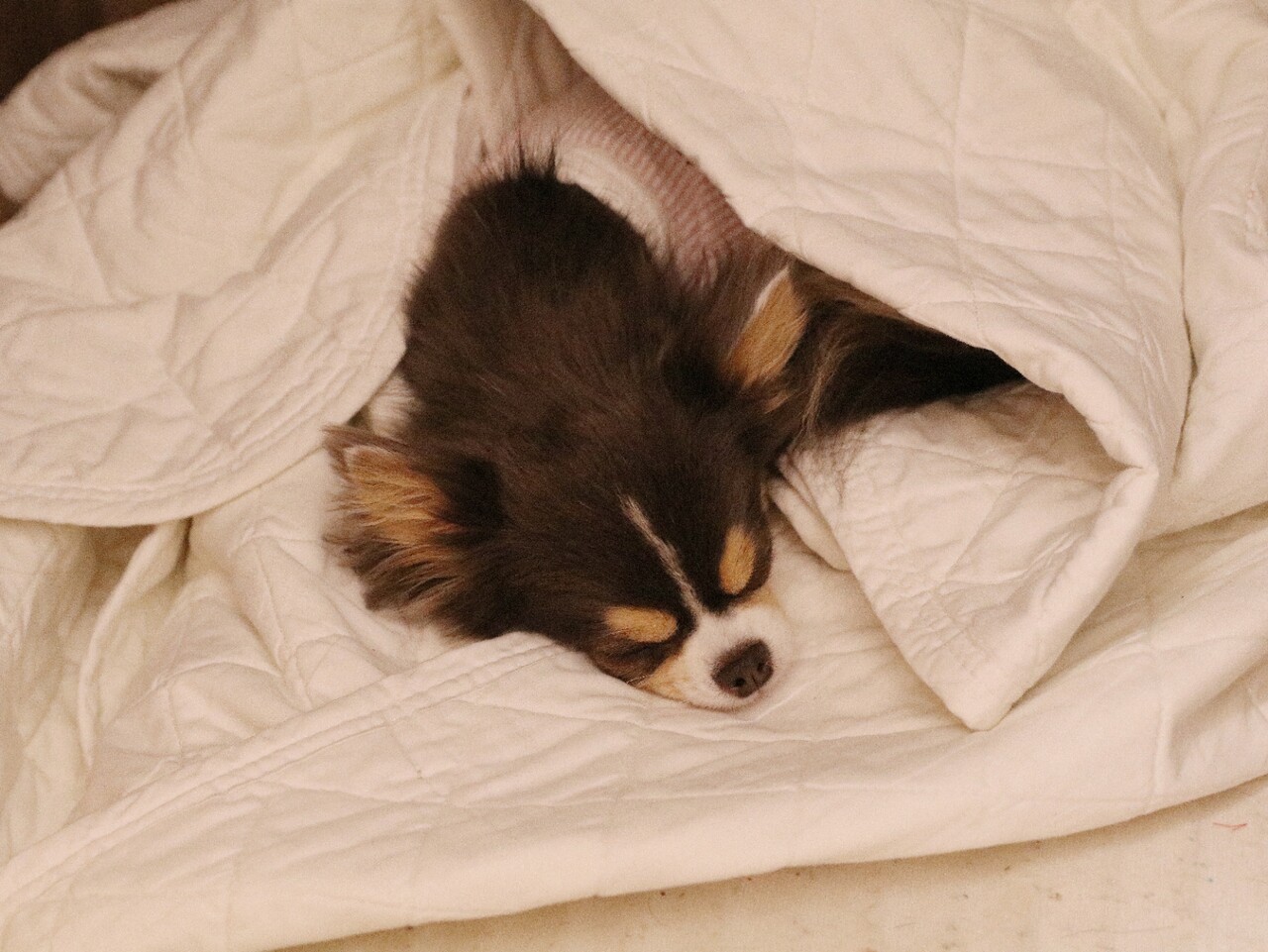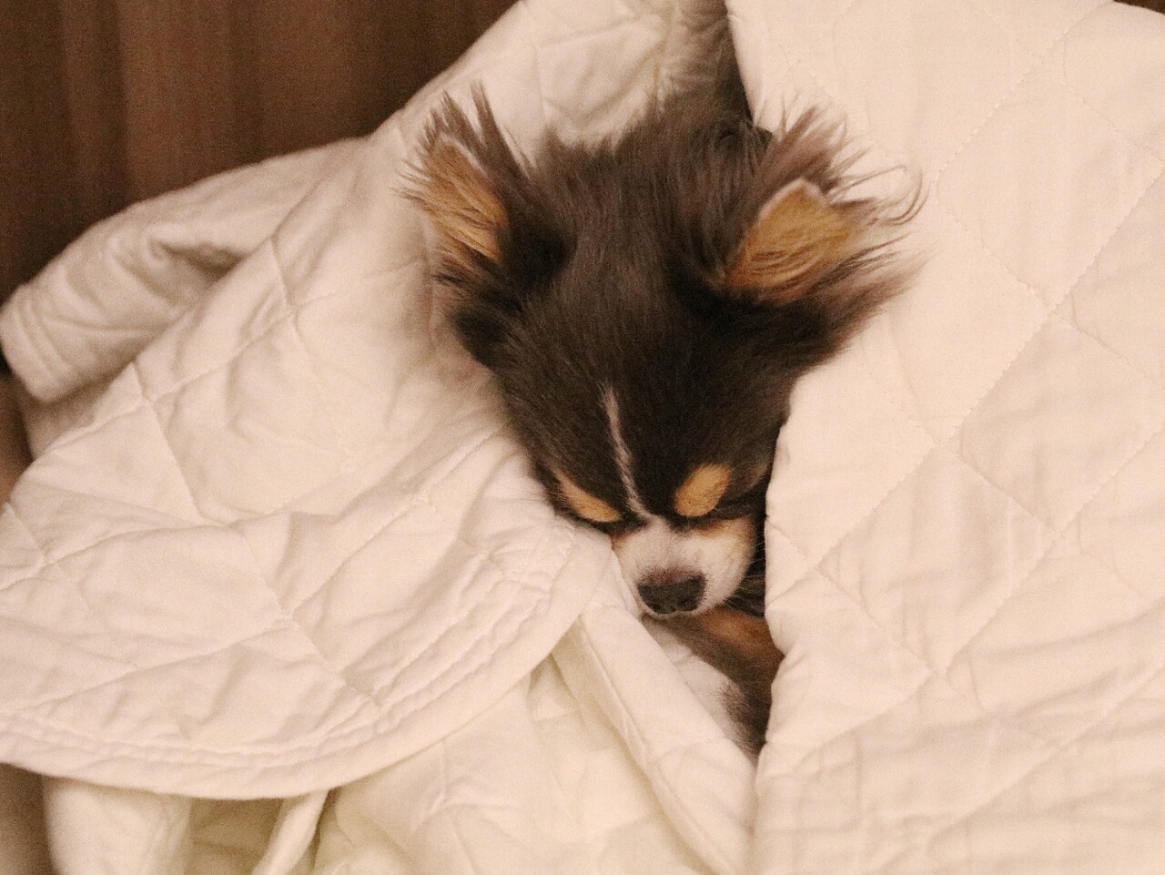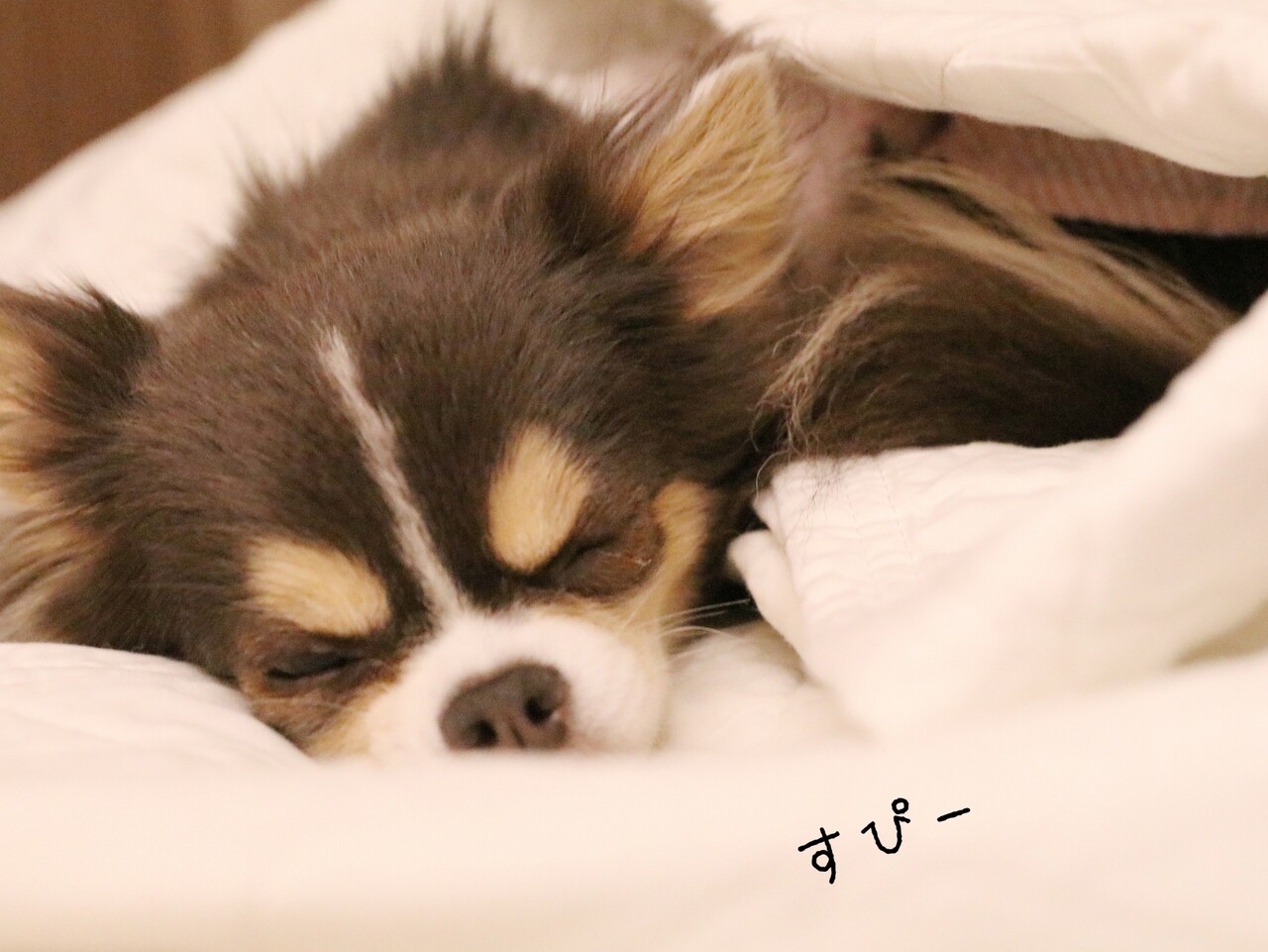 最近、寝言の頻度が増えた気がしてよく眠れていないのかと心配していたのですが、「犬が寝言を言うのは夢を見ているから、夢を見ているときは熟睡できているとき」という獣医さんの話をネットで見つけたので、とりあえず安心しています。