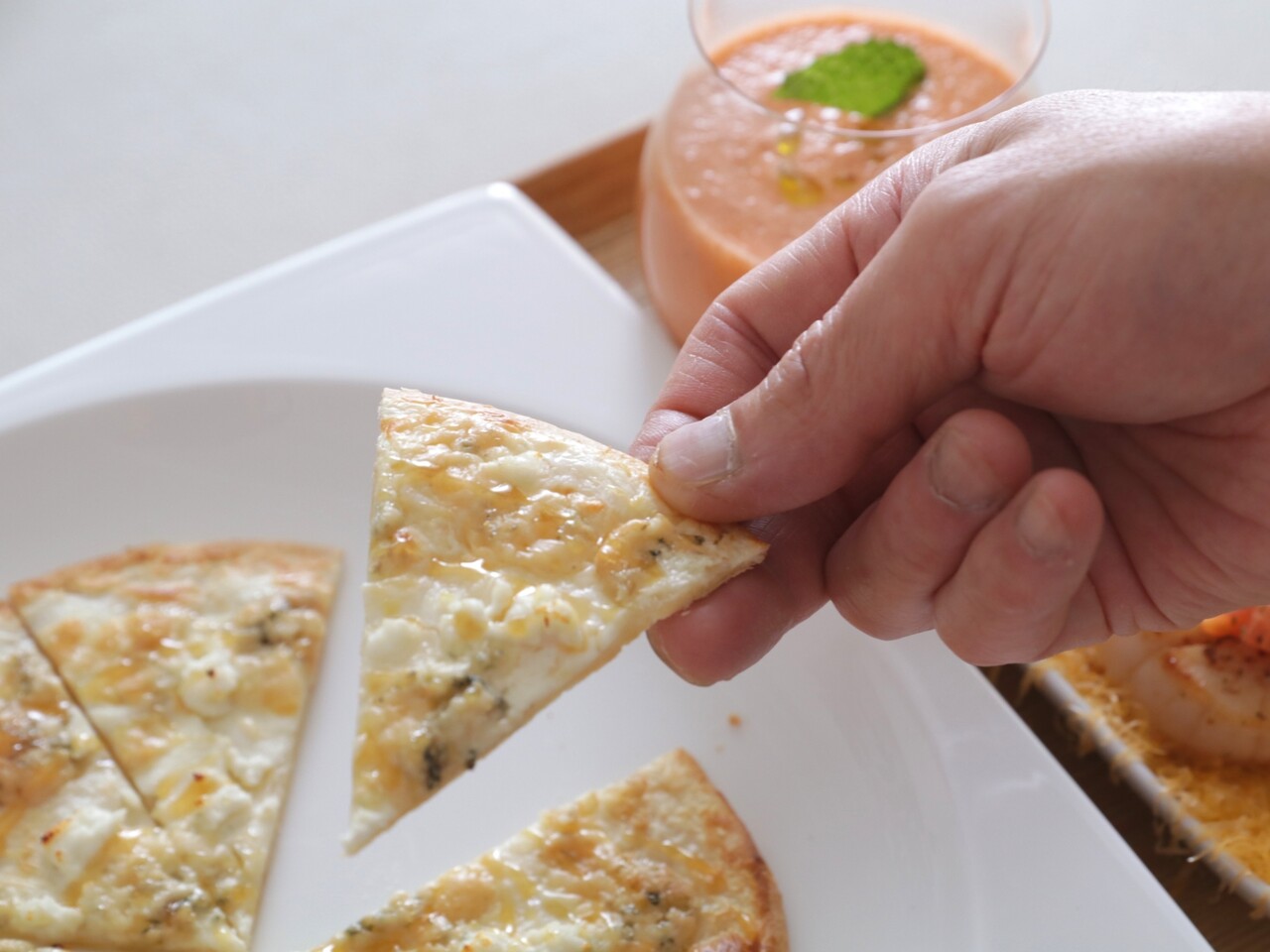 チーズピザにハチミツ!