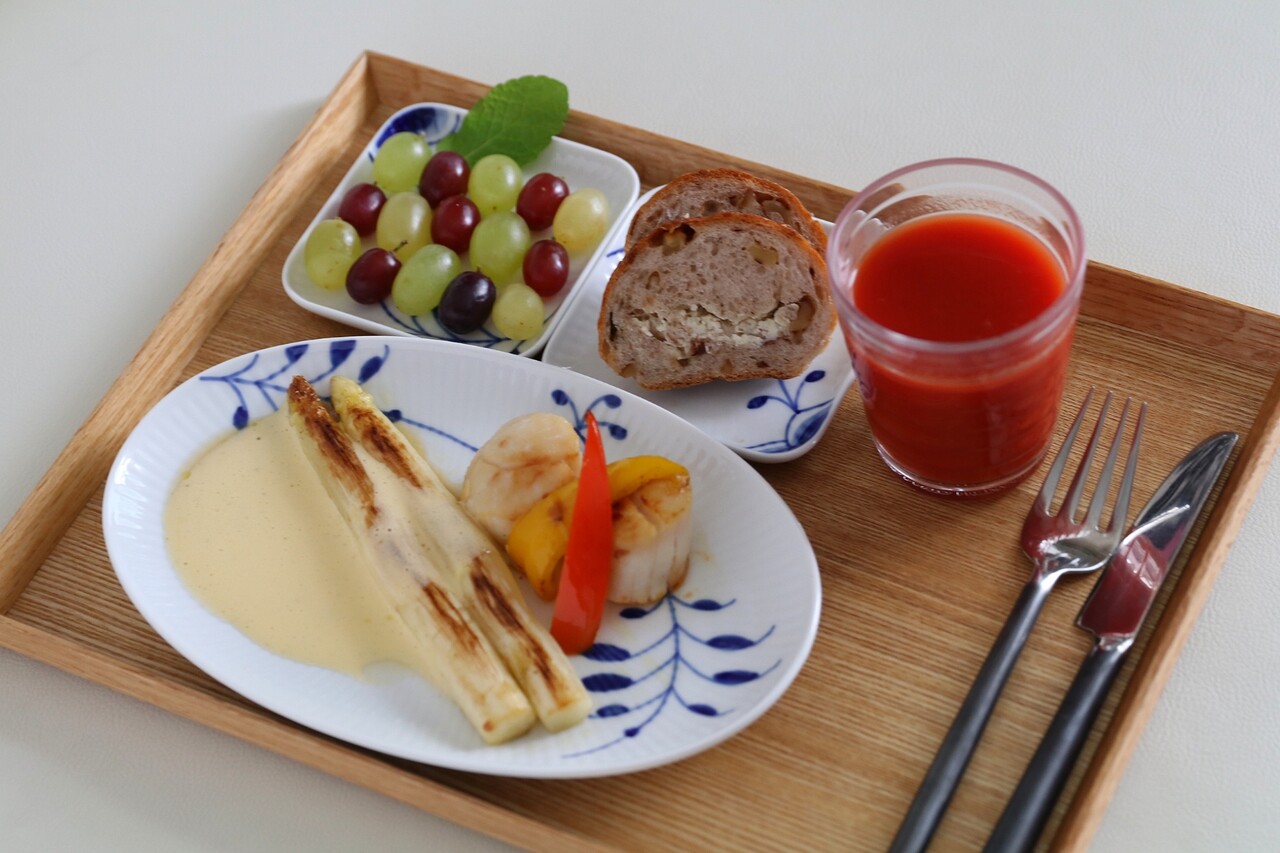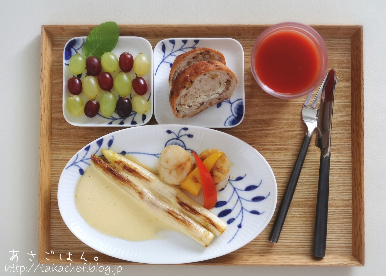 アスパラにかけたり、ホタテにかけたり、エッグベネディクトにかけてみたり。