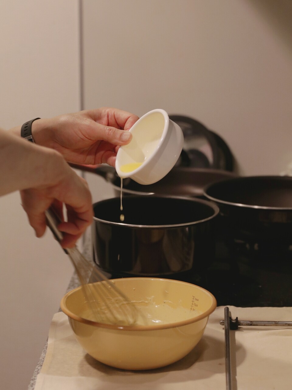 作りたてのオランデーズソースをたっぷりかけていただきます。