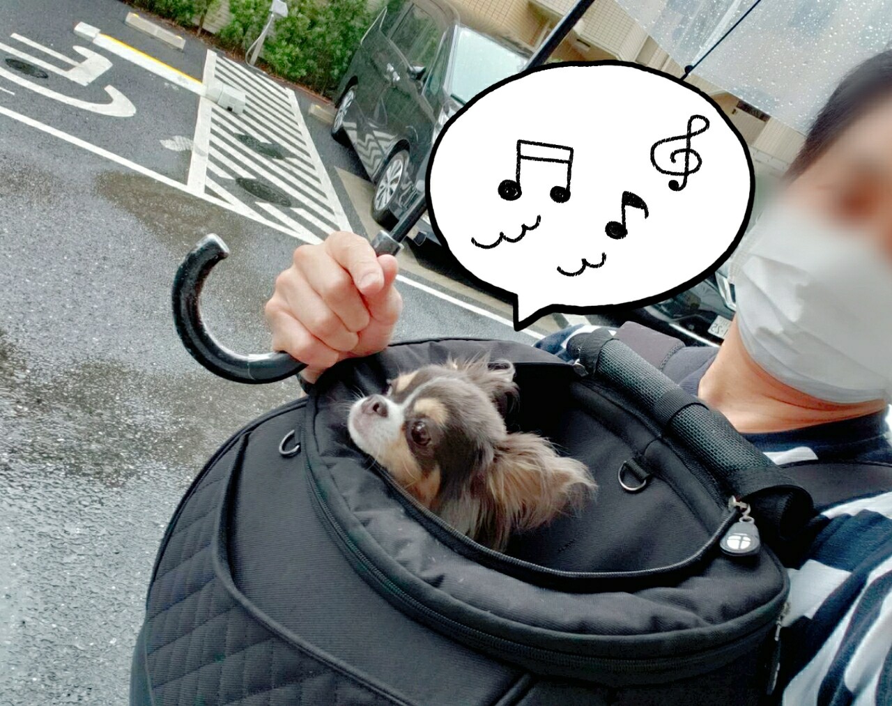 雨の中、たかシェフ、まりちゃん