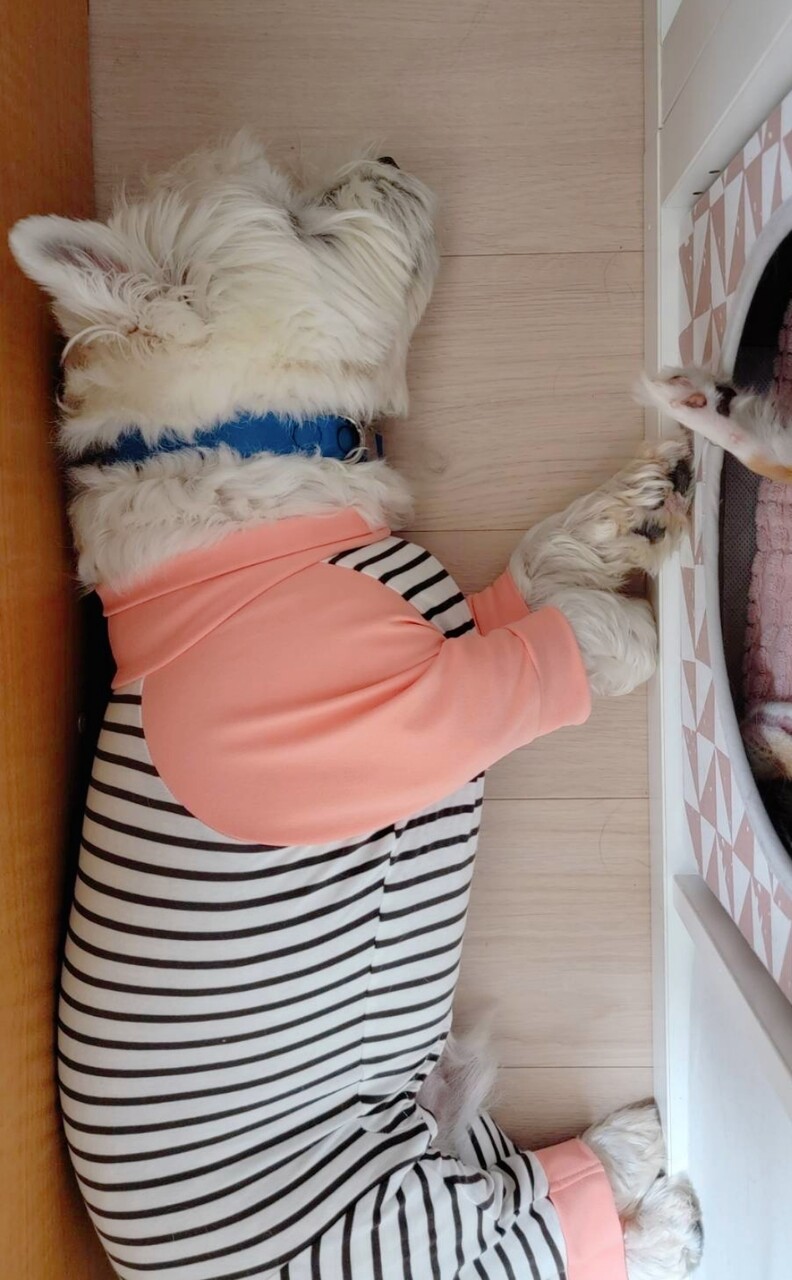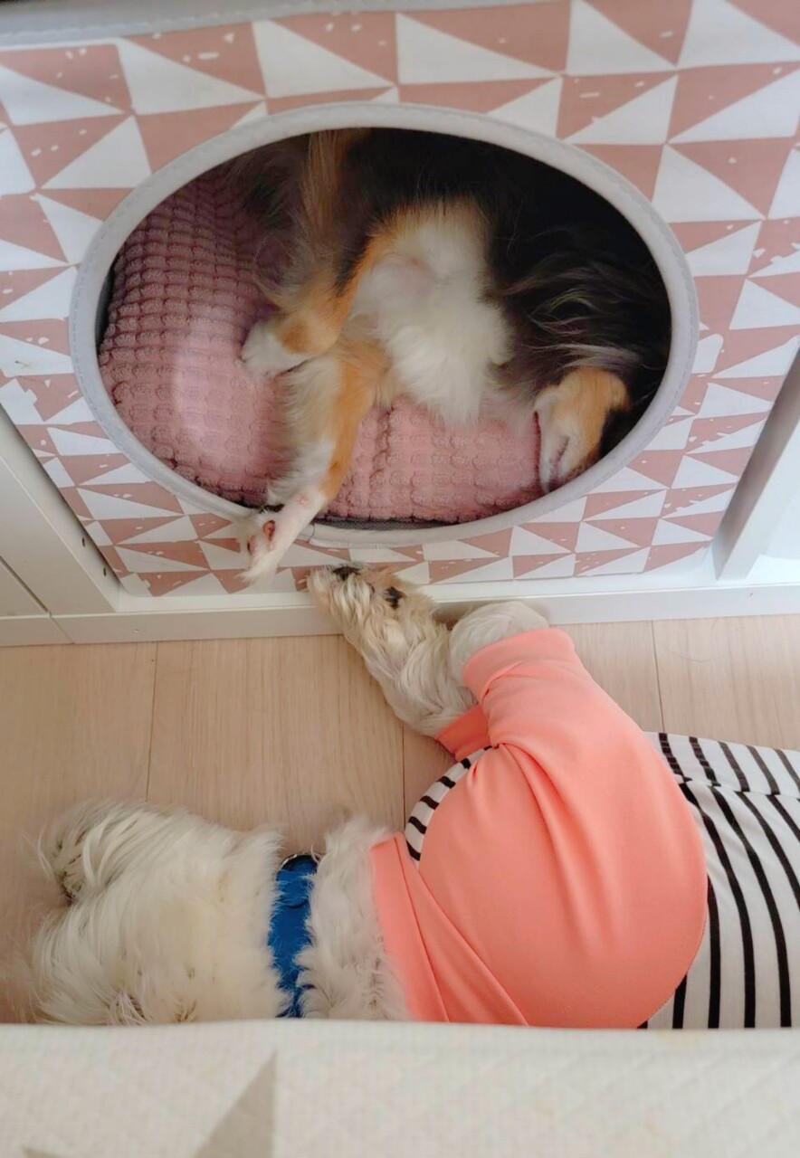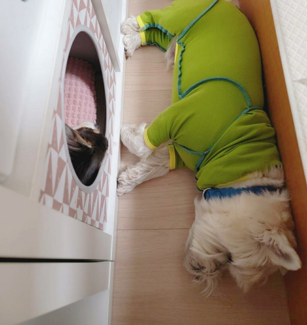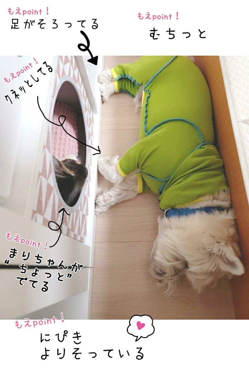 「まりちゃんが寝てるから、ぼくもここで寝よ~。」