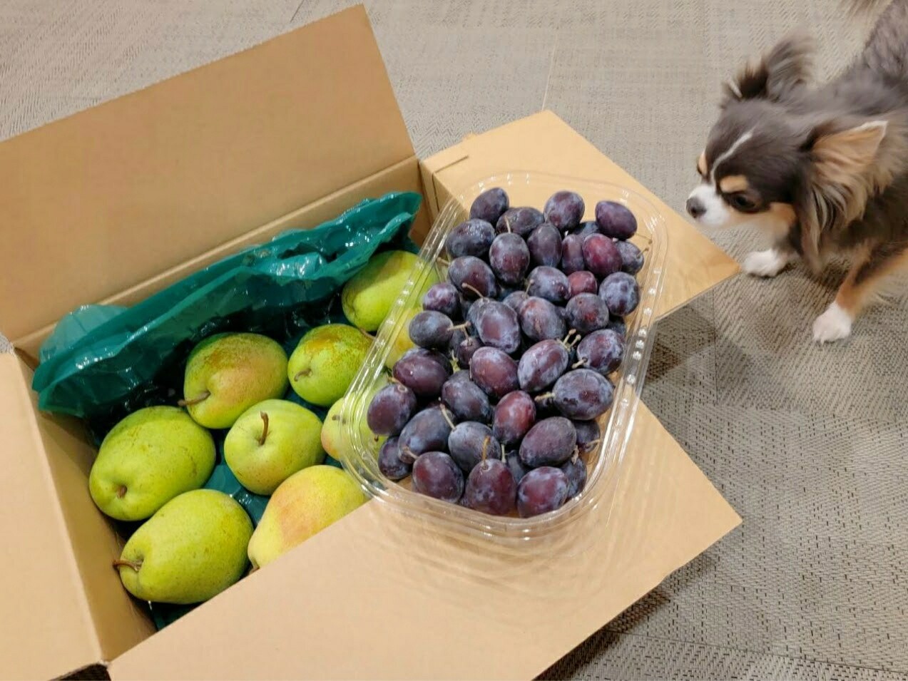 妹がやってくる前に、我が家に妹から、洋ナシと、生プルーンが届いた。