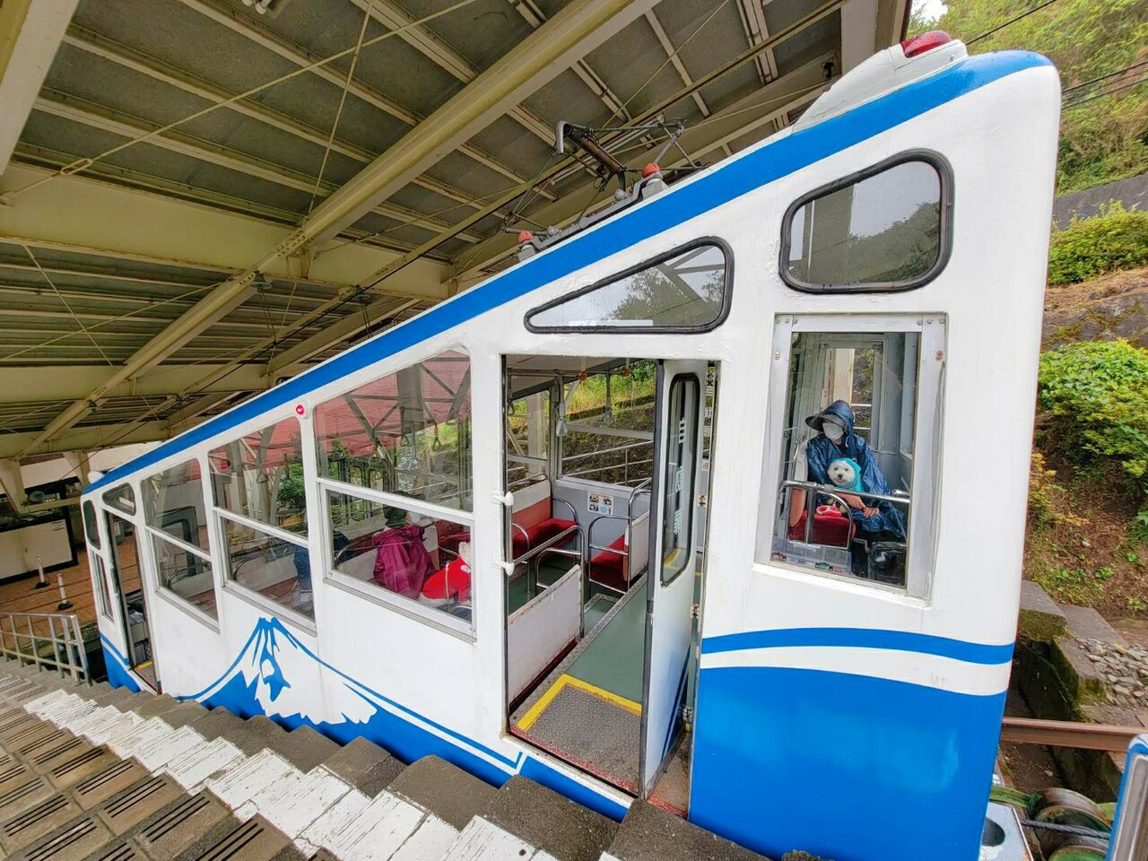 十国峠に行くには、ロープウェイ(❓ 車輪があるからロープウェイではないか)にのるよ。