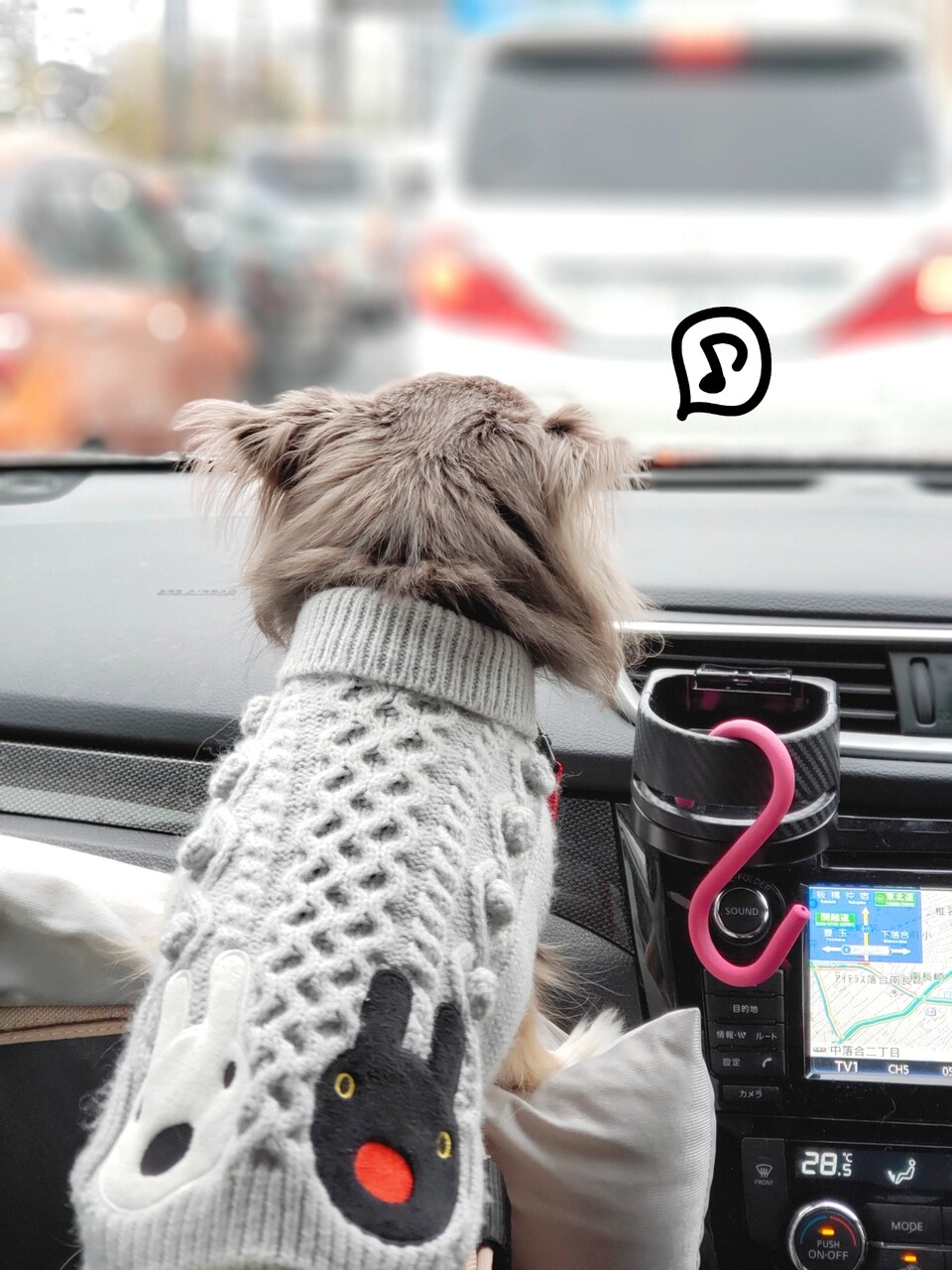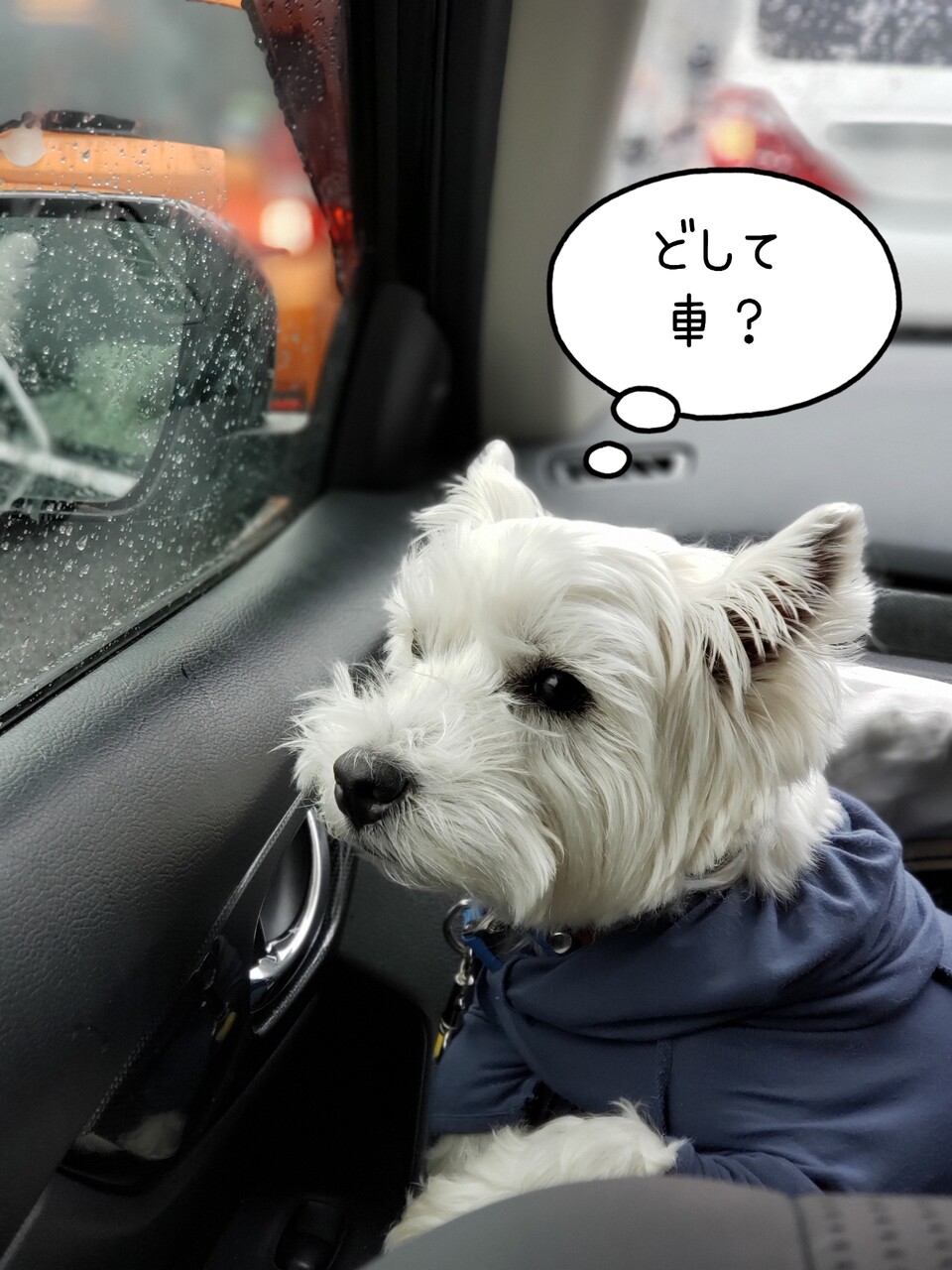 お散歩に行く気まんまんで、家をでてきたのに、車に乗せられた