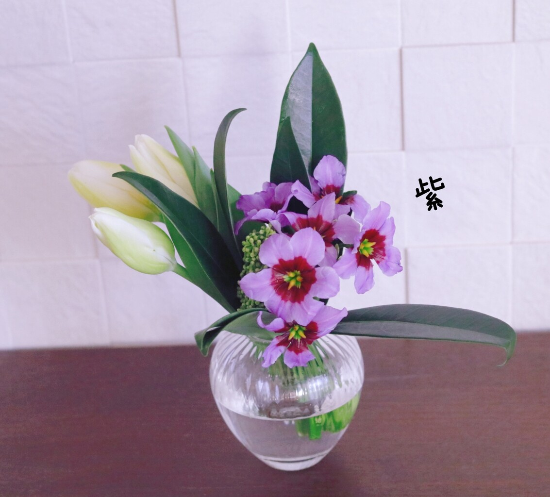 紫💜がラッキーだと、いろんな場面で差し色にできそうですね。お正月用お花もムラサキはハッとするつよさがあり、素敵だと思いました。