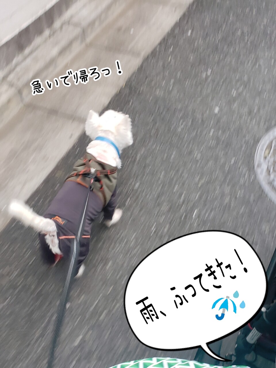 この間、まりちゃんと、ゆきちと、テクテクお散歩に行ってたら、雲行きが怪しくなってきた。
