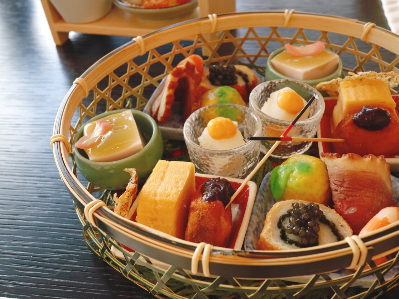 わらび餅、フリュイ、琥珀糖 桜チョコレート、練り切り、ういろう