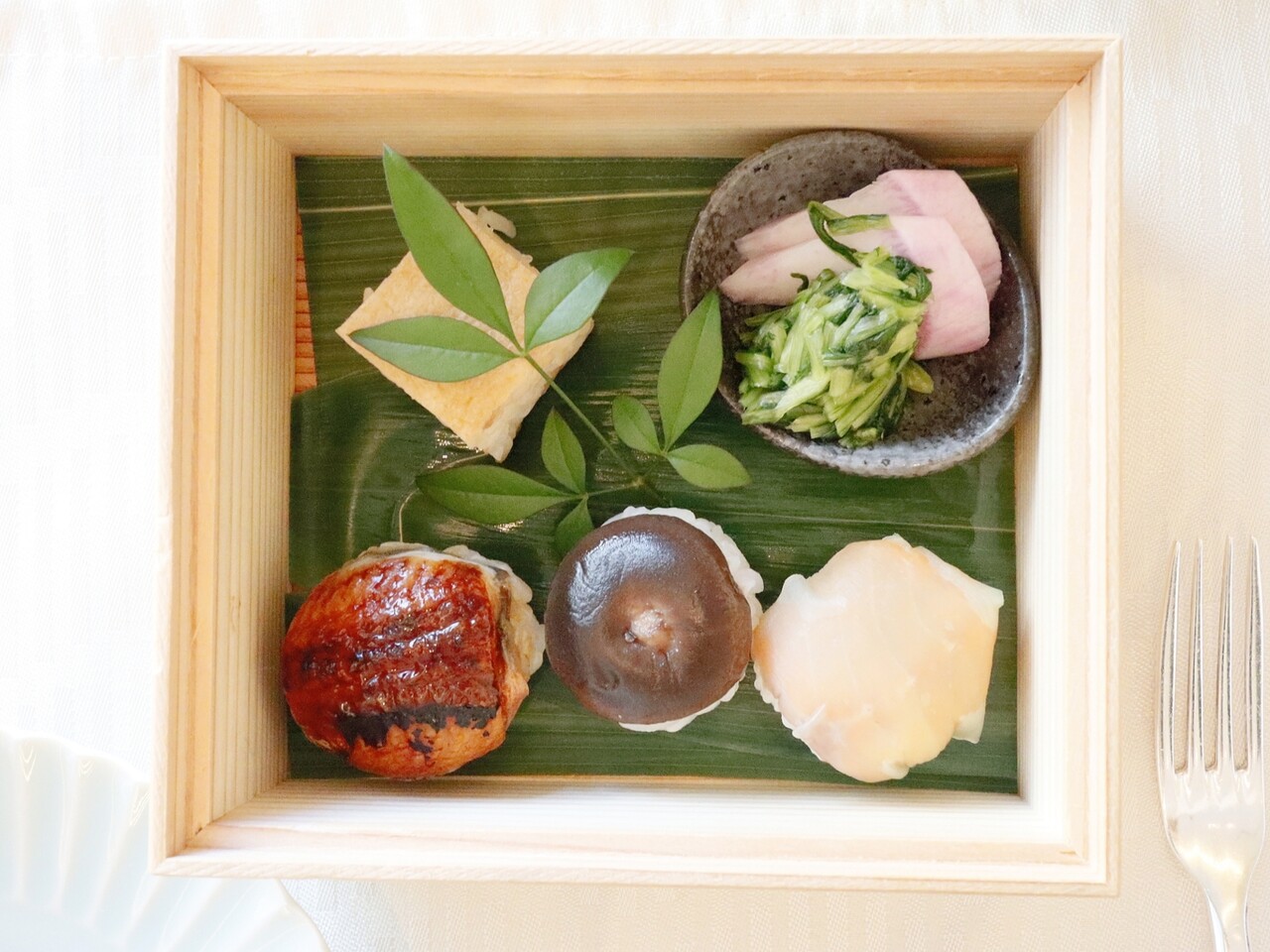 右上の柚子の入ったお皿に手をつけてしまった。