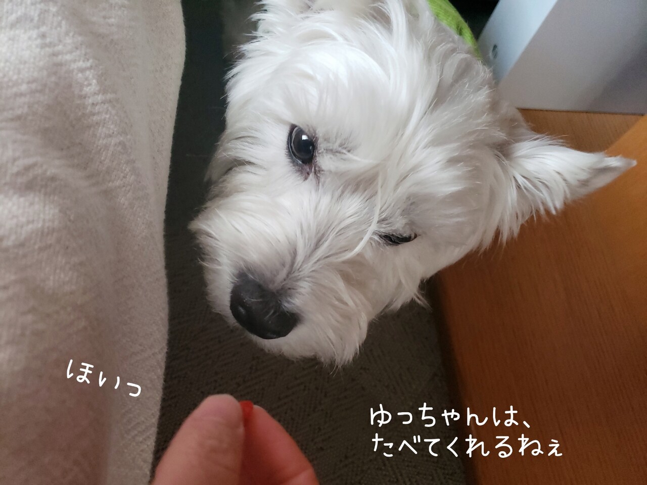 ゆきちは、食べてくれるよね。ほれほれ、どうぞ。