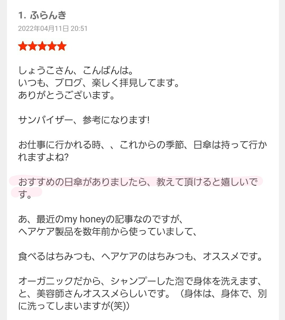 日傘だけではなく、(ゆきちくんや、まりちゃんの)しょうこさんの、理系?的な考察が、、わたしにはとても参考になりまして。