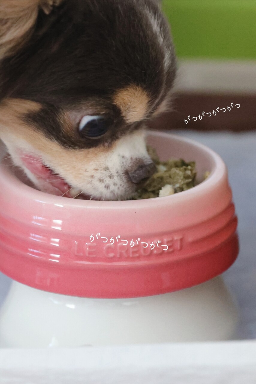 チワワに専科しているので関節、消化、毛艶に良いものが入ってます。おやつとごはんのトッピング分を一日量から減らして朝晩あげています。