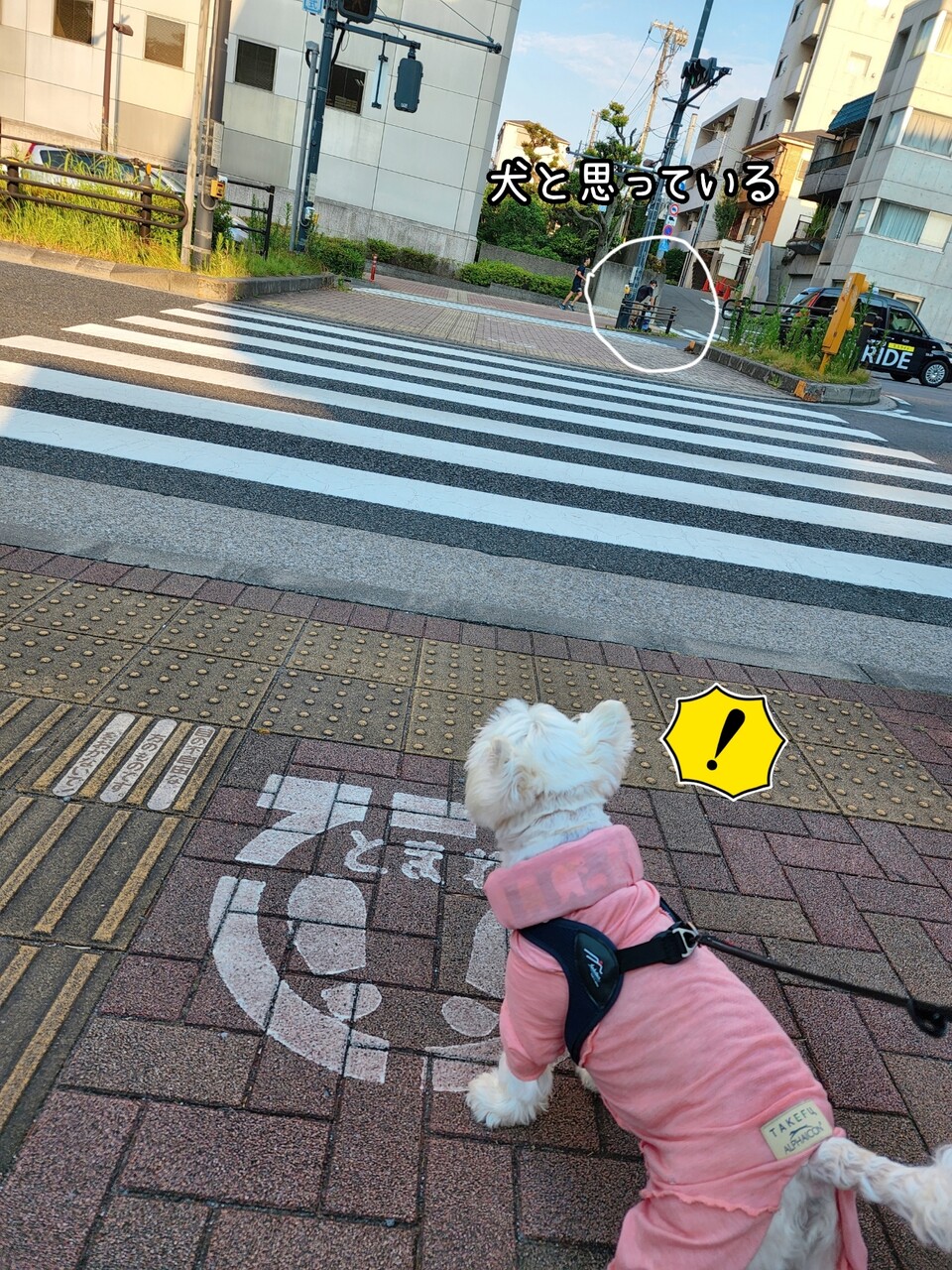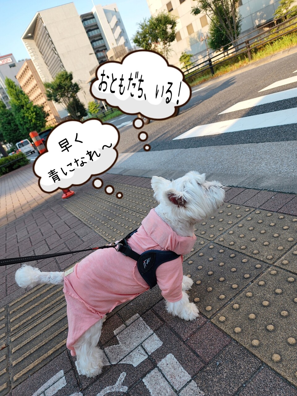 と、ゆきちが、信号を渡ろうって