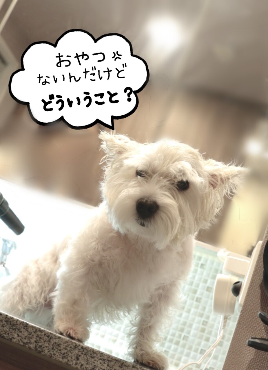 たかシェフが、おやつを持ってきてくれて、ゆきちがクンクンしている棚に置いて行ってくれるんだ。