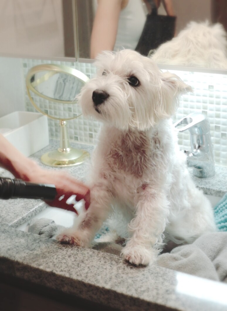 皮膚の調子が良かったもんだから、飼い主は、調子にのって、ゆきちをウエスティカットにしてみようと思った。
