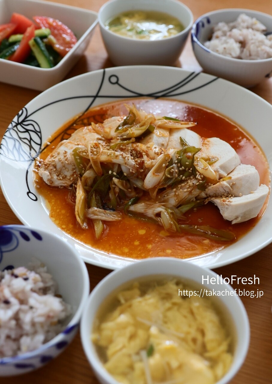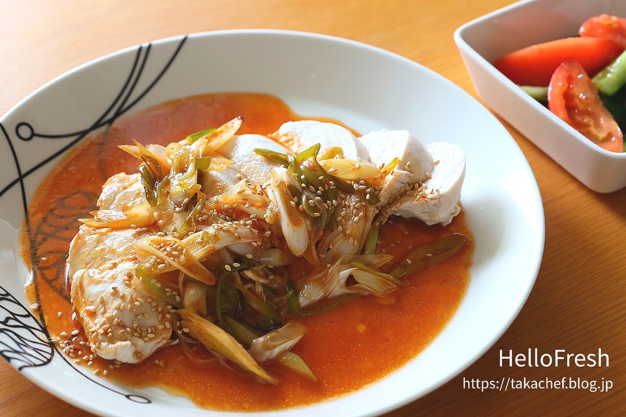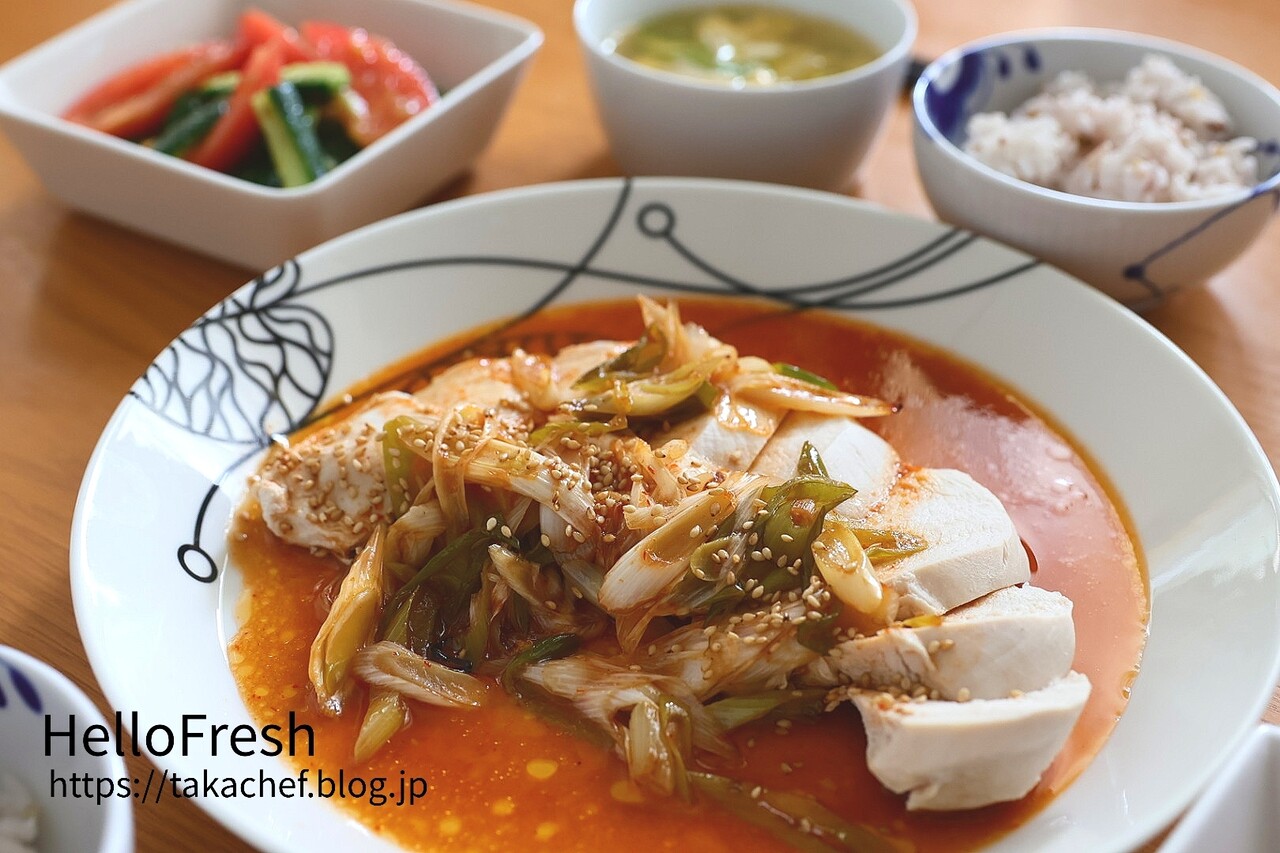「韓国風蒸し鶏のコチジャンねぎソースがけ」