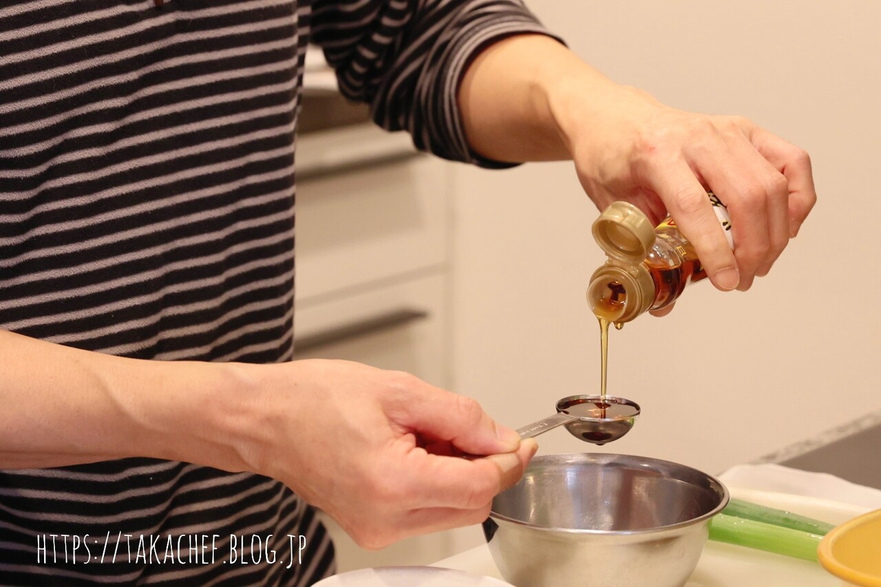 我が家は、他のミールキットもつかっていたりするのですが、調味料が全部混ぜてやってくるものもあるんですよ。こうして、調味料も自分で混ぜられると、ちょこっと量が調整できたり、あたしのように砂糖を他の甘味料に変えてみたりできるのもいいね。