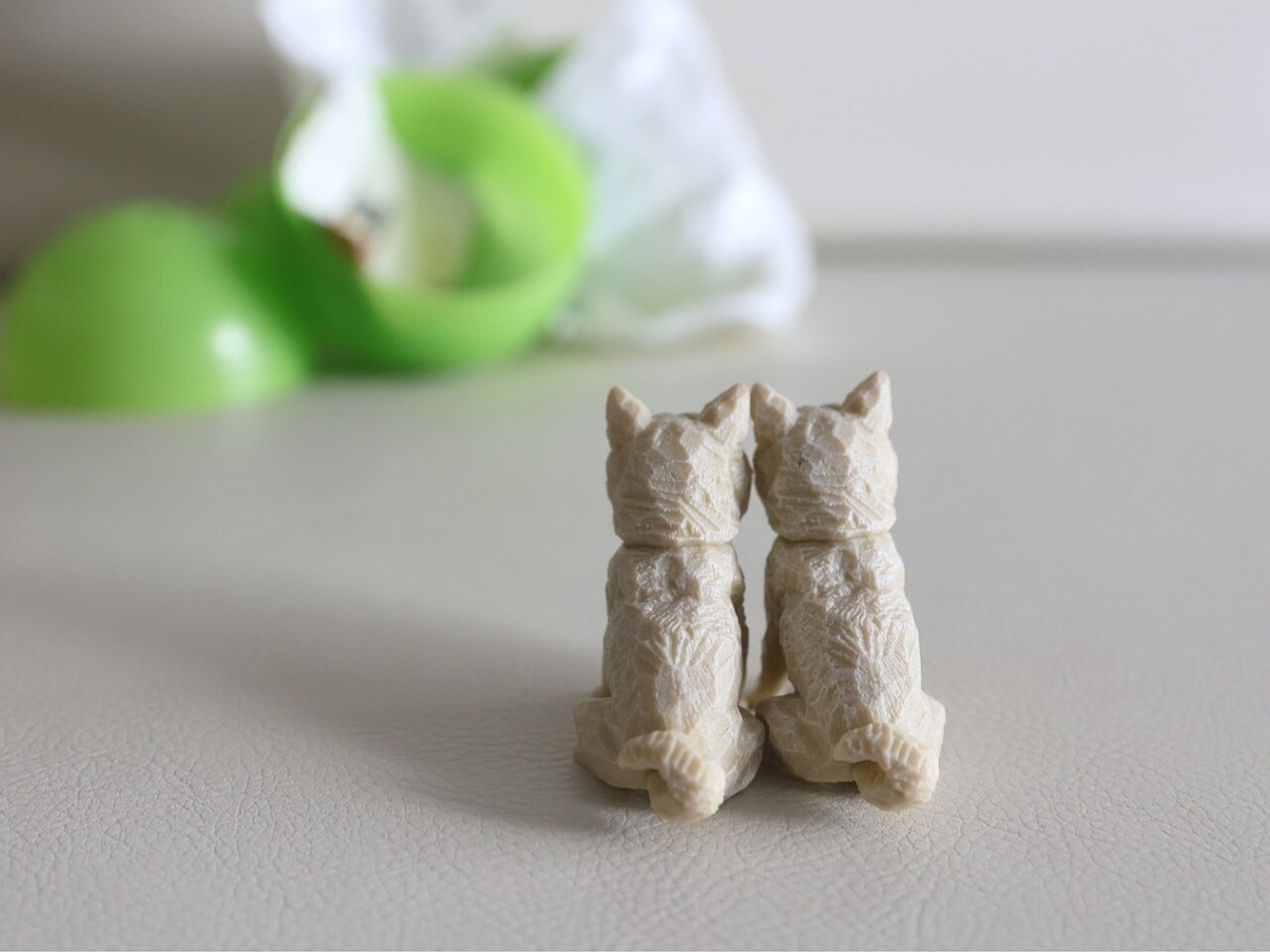 はしもとみおさんが木彫りしたもので、型を作って樹脂を流し込んだものらしい