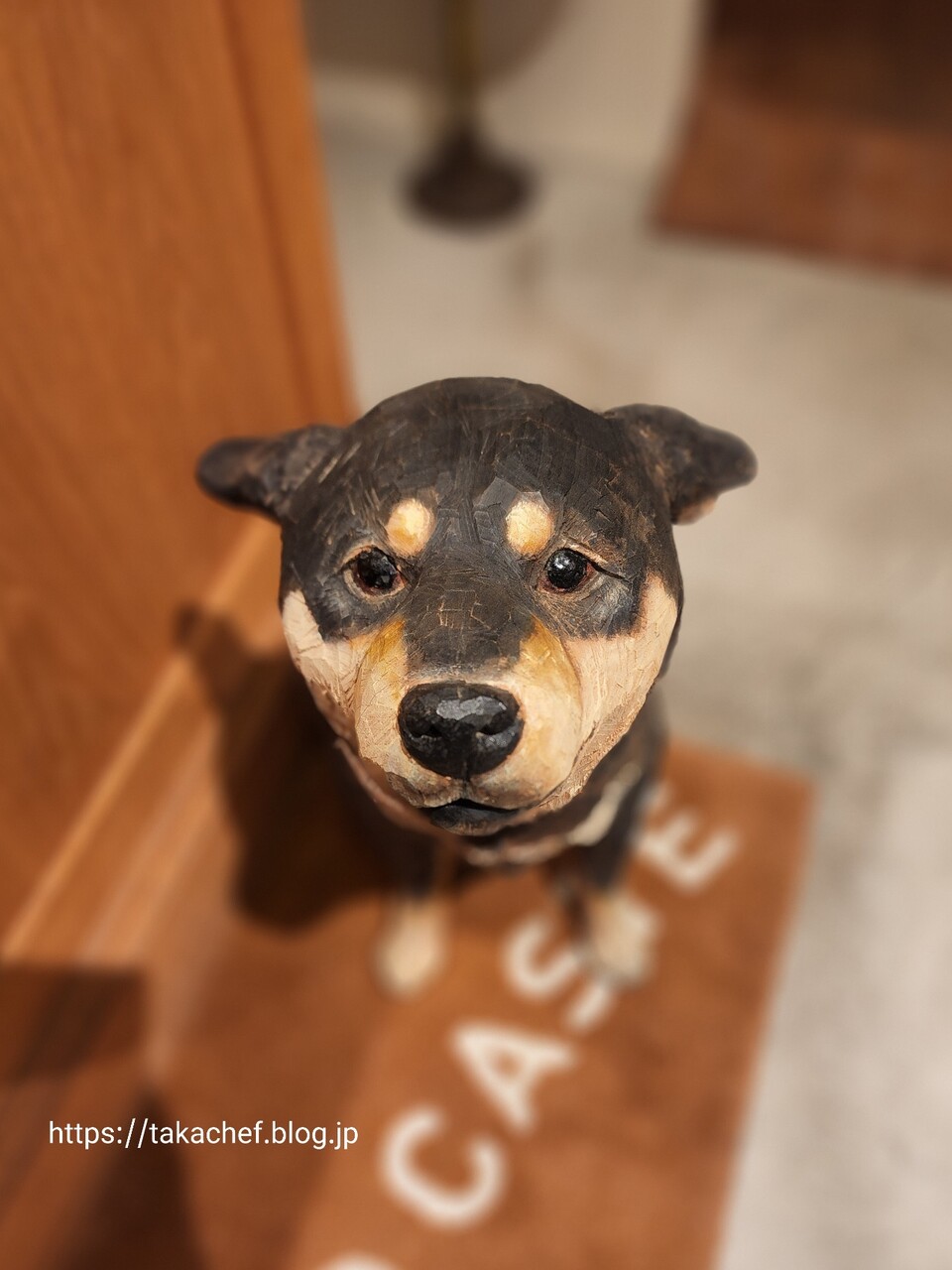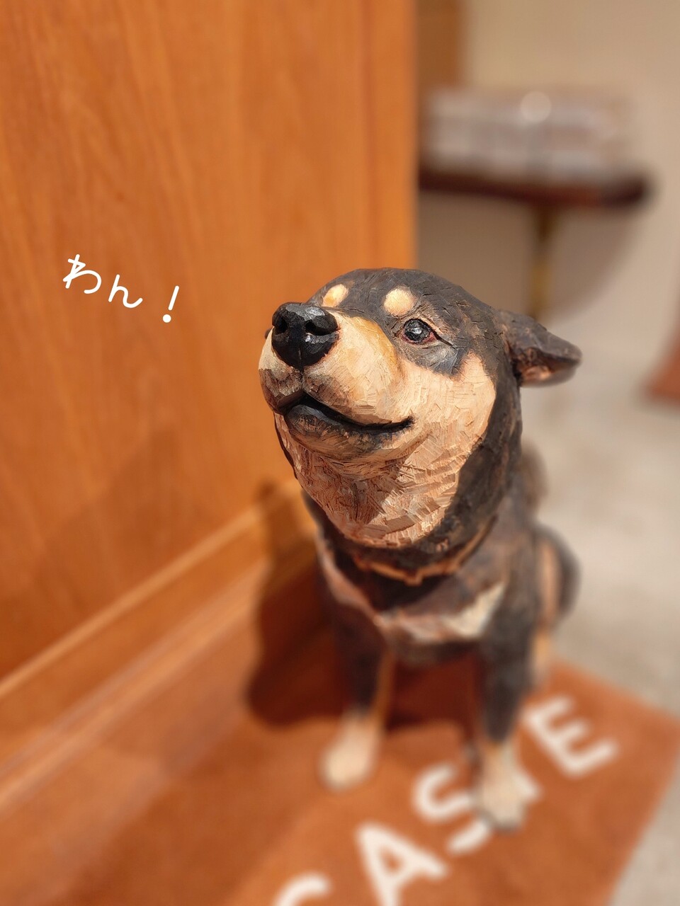 「柴犬のまる」の個展に行った時にみた、はしもとみおさんが作った、木彫りのまるちゃんかいた。