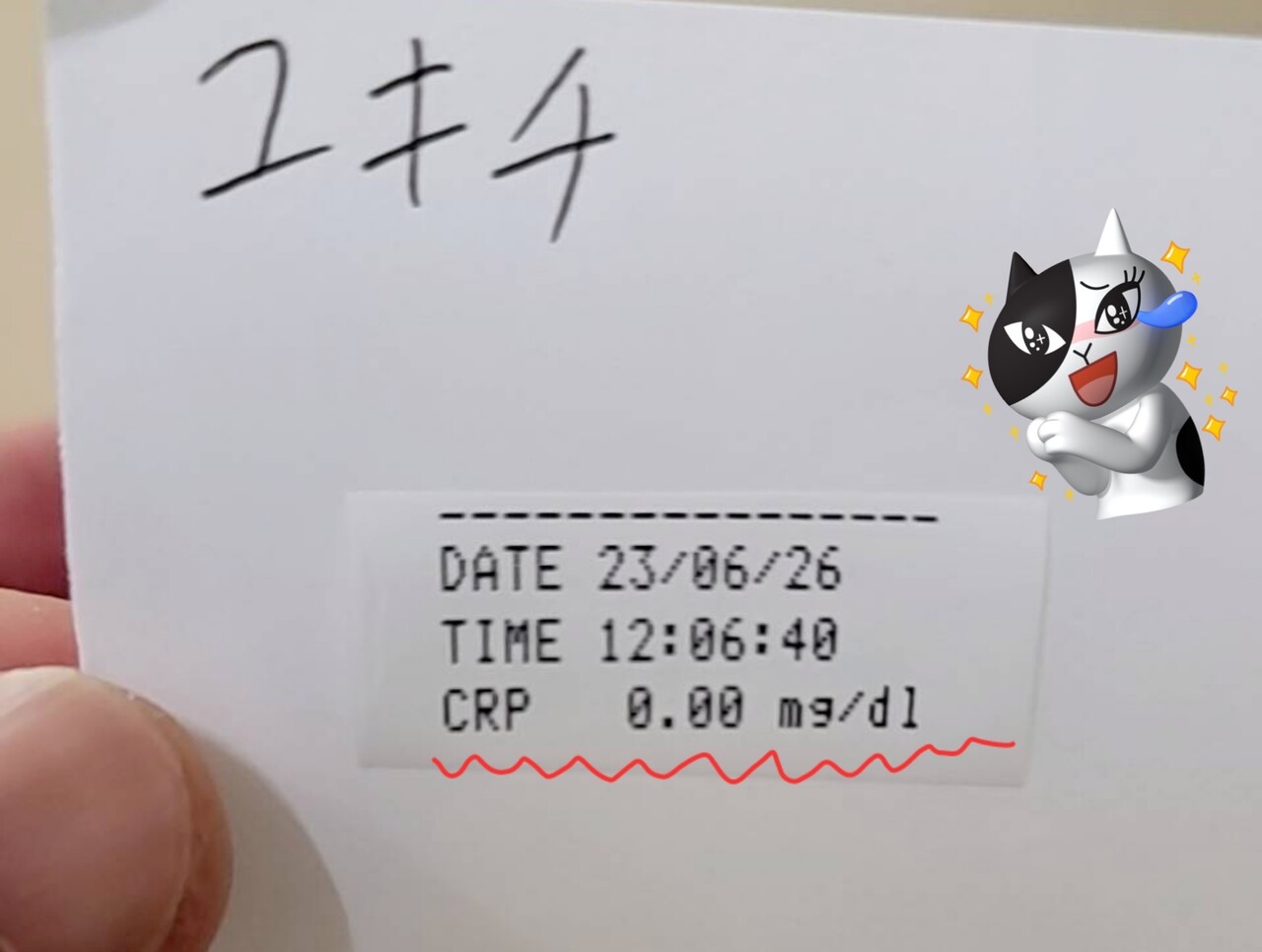 CRPだけ採血したのだが、そこもね、今までのケンケンで通院してきた病院とは違うところで。