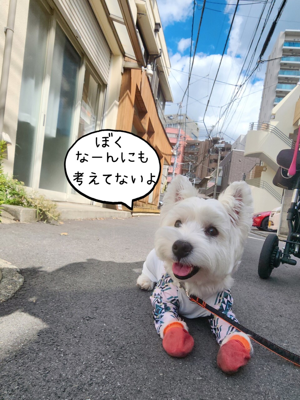 さっき、シュナちゃんが歩いていて、まりちゃんがわんわんするから、いっそいで横道にそれたのだけれど、