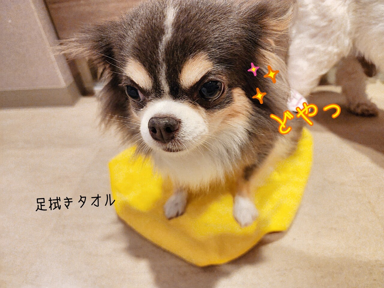 それようにだしたタオルに、まりちゃんがON