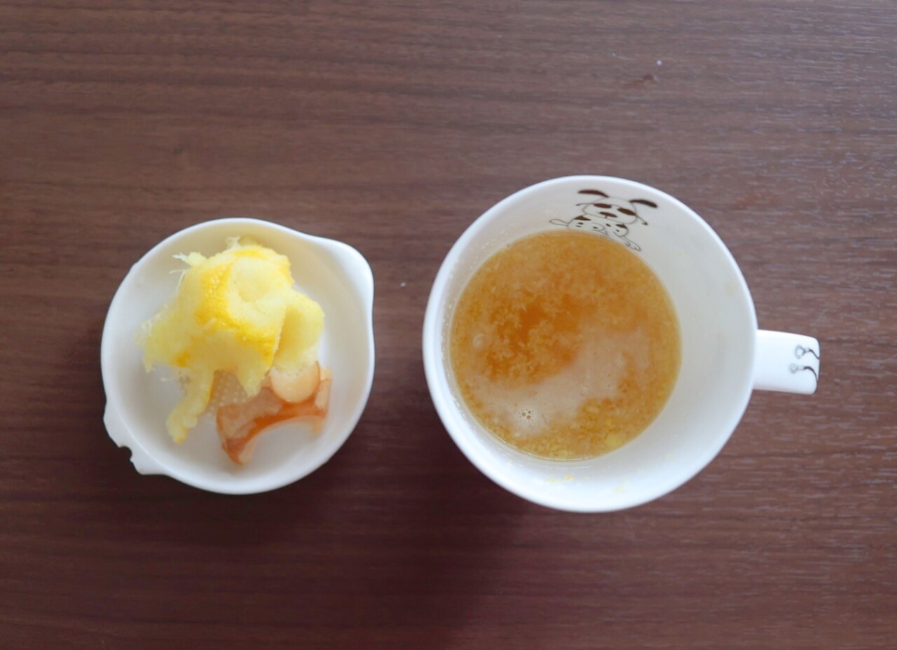 朝に、ポッカレモンをお湯で割って飲んでて。