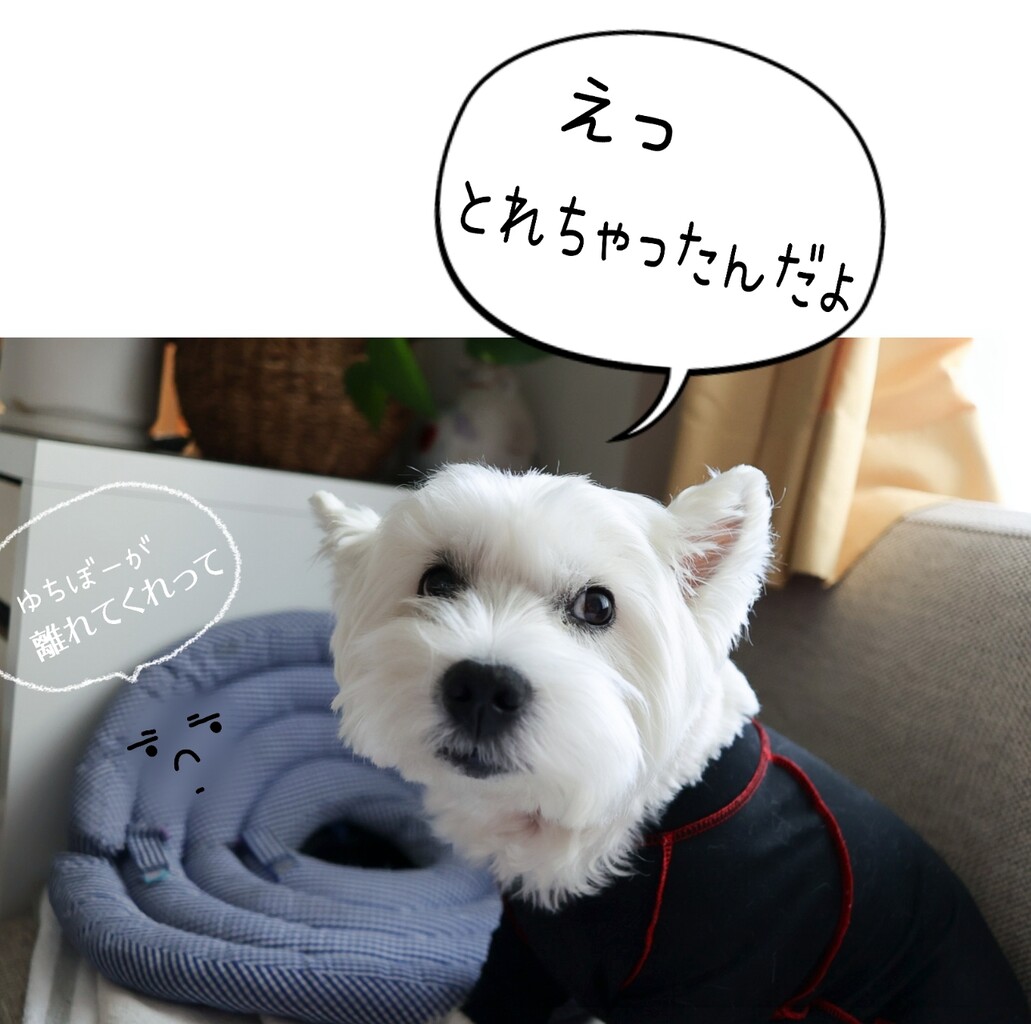 自由自在にエリザベスカラーを操れて、つけてる時は、納得しているのだな。
