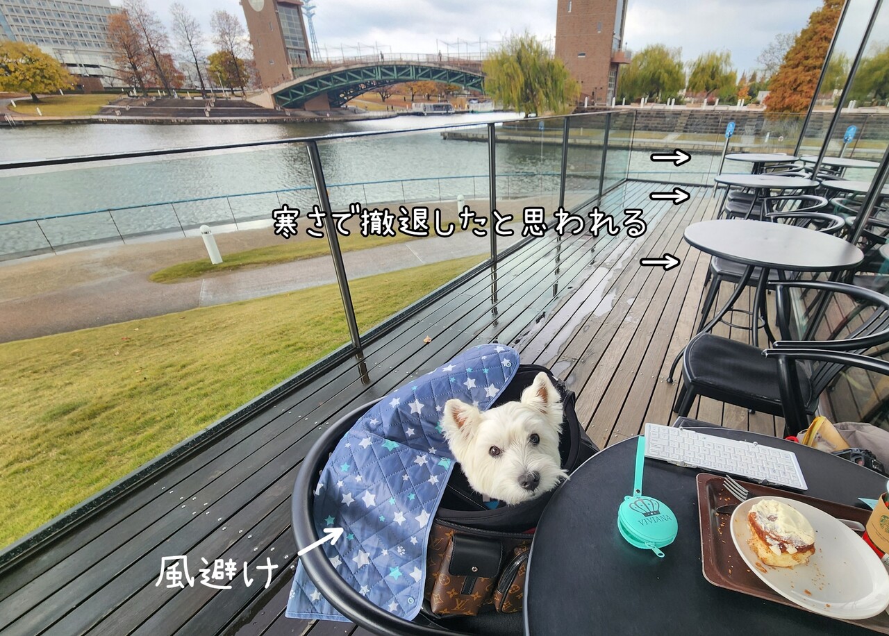 ワンは、テラス席 (人間様にも人気高し。高倍率だと思われます)