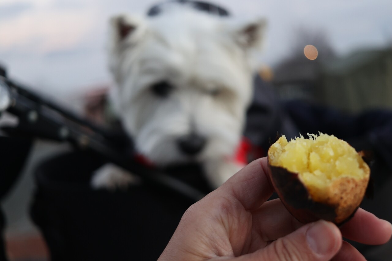 強風で、もう焚き火ができなくなっちゃいそうなので、焼きいもが間に合ってよかったね。