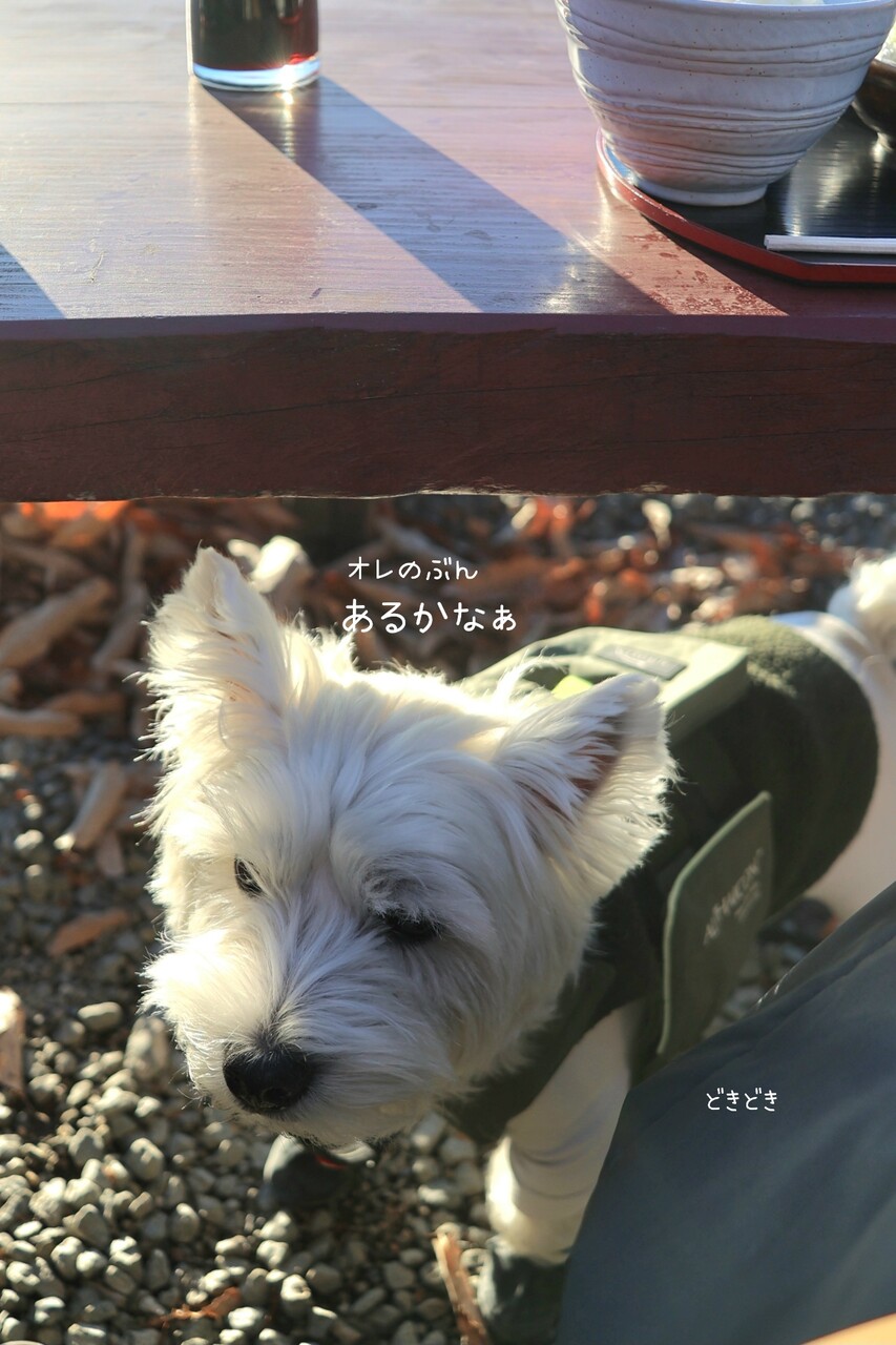 ゆぴちも、いつものテーブルの下にスタンバイ