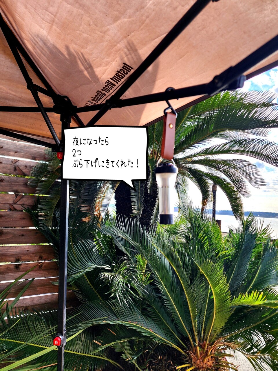日も暮れてくらくなってきたら、ライトを2つぶら下げに来てくれたよ。