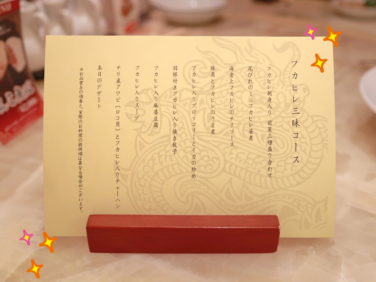 他すべてに、ちょろりとフカヒレさんがはいってた。