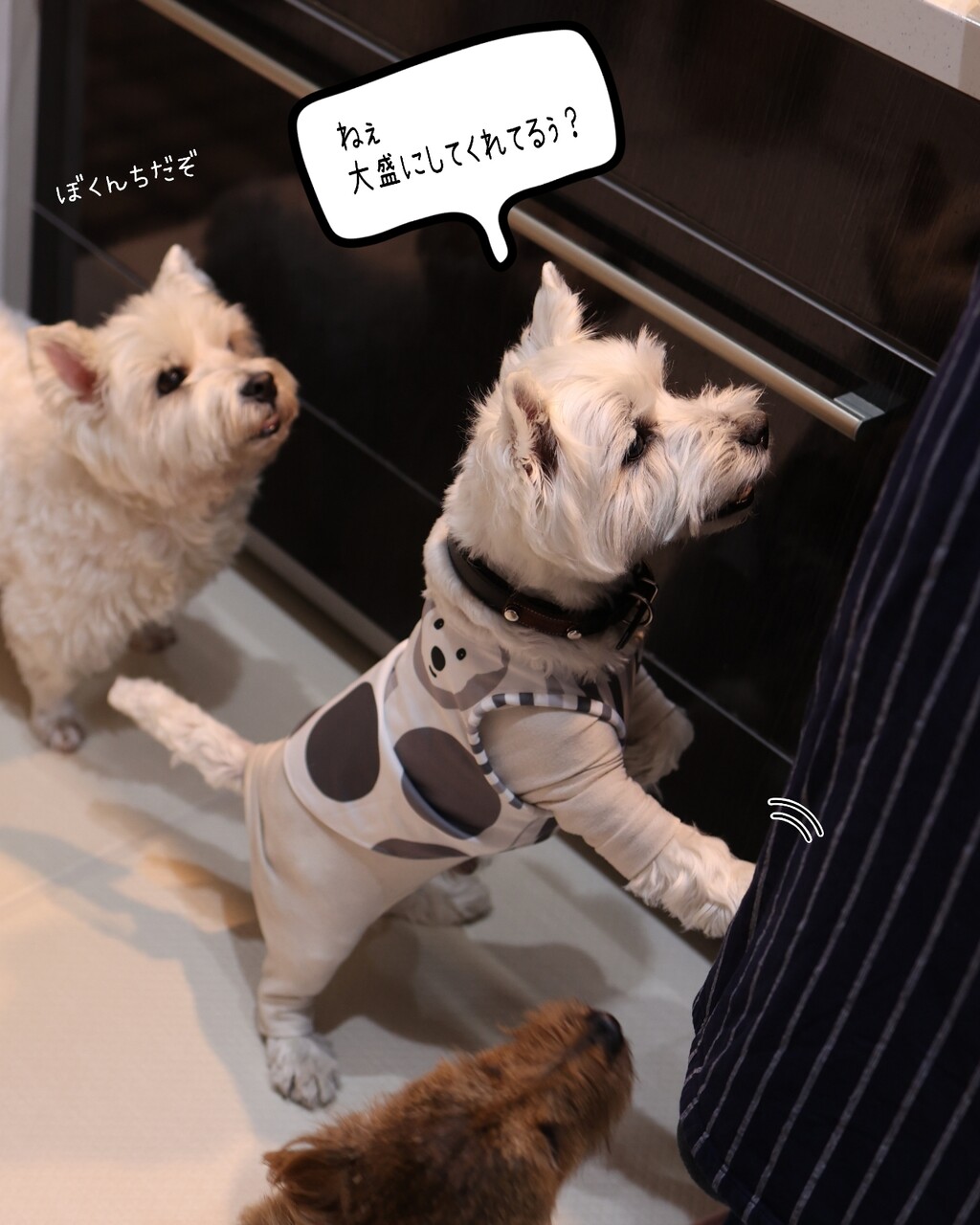 待ちきれなかった、犬たちのごはんタイム